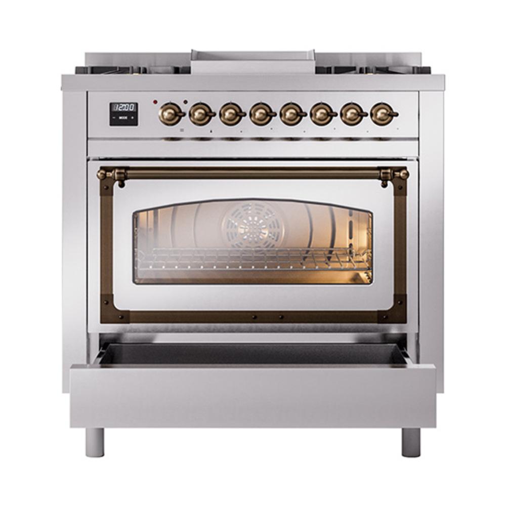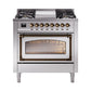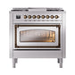 Ilve UN36FNMPSSB Ilve Un36Fnmpssb Nostalgie Ii Noblesse 36" Dual Fuel Range (Natural Gas, Triple Glass Door, Stainless Steel, Burnished)