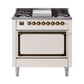 Ilve UN36FQNMPAWBLP Ilve Un36Fqnmpawblp Nostalgie Ii Noblesse 36" Dual Fuel Range (Liquid Propane, Solid Door, Antique White, Burnished)