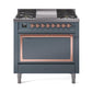 Ilve UN36FQNMPBGPLP Ilve Un36Fqnmpbgplp Nostalgie Ii Noblesse 36" Dual Fuel Range (Liquid Propane, Solid Door, Blue Grey, Copper)