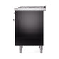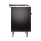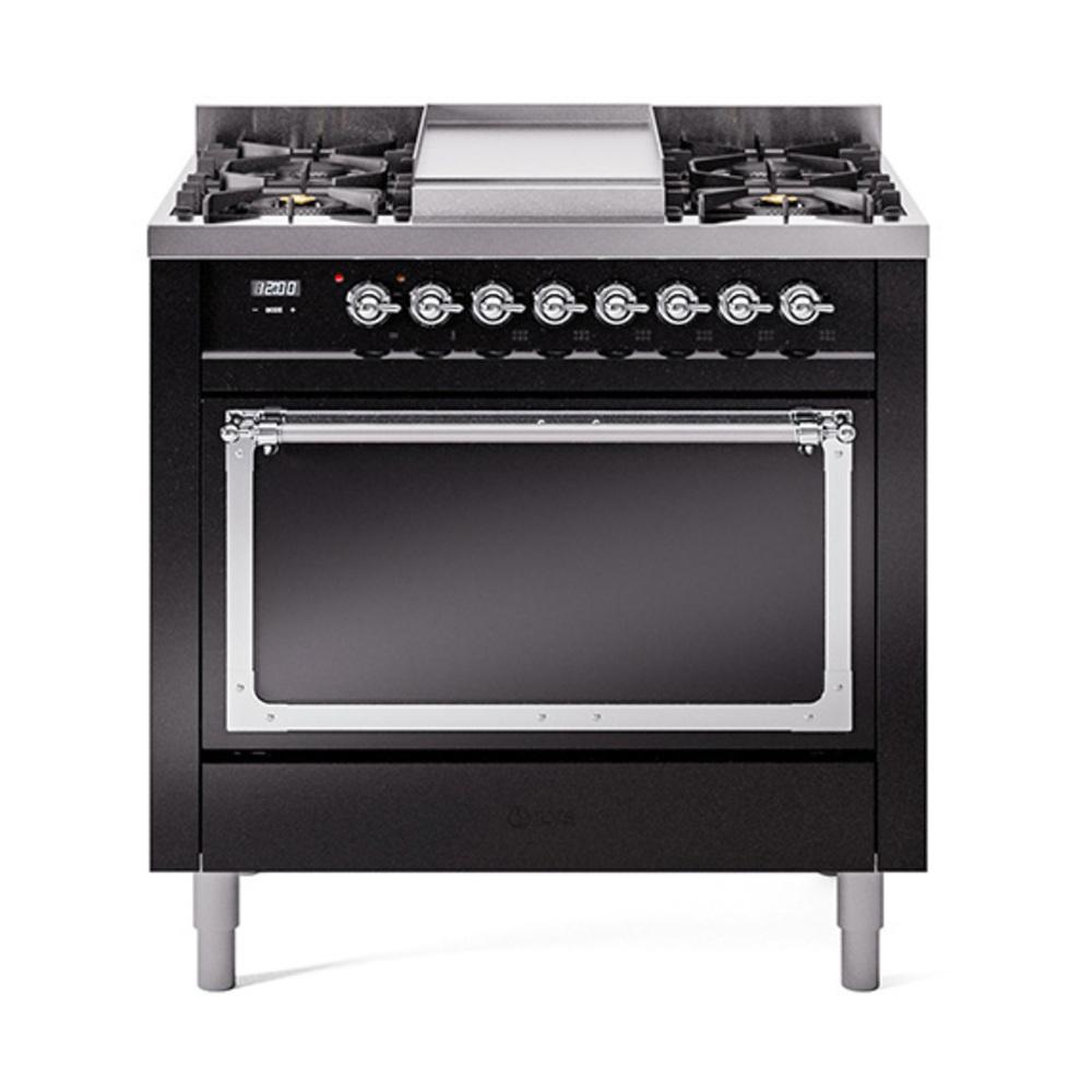 Ilve UN36FQNMPBKC Ilve Un36Fqnmpbkc Nostalgie Ii Noblesse 36" Dual Fuel Range (Natural Gas, Solid Door, Glossy Black, Chrome)