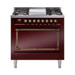 Ilve UN36FQNMPBUBLP Ilve Un36Fqnmpbublp Nostalgie Ii Noblesse 36" Dual Fuel Range (Liquid Propane, Solid Door, Burgundy, Burnished)