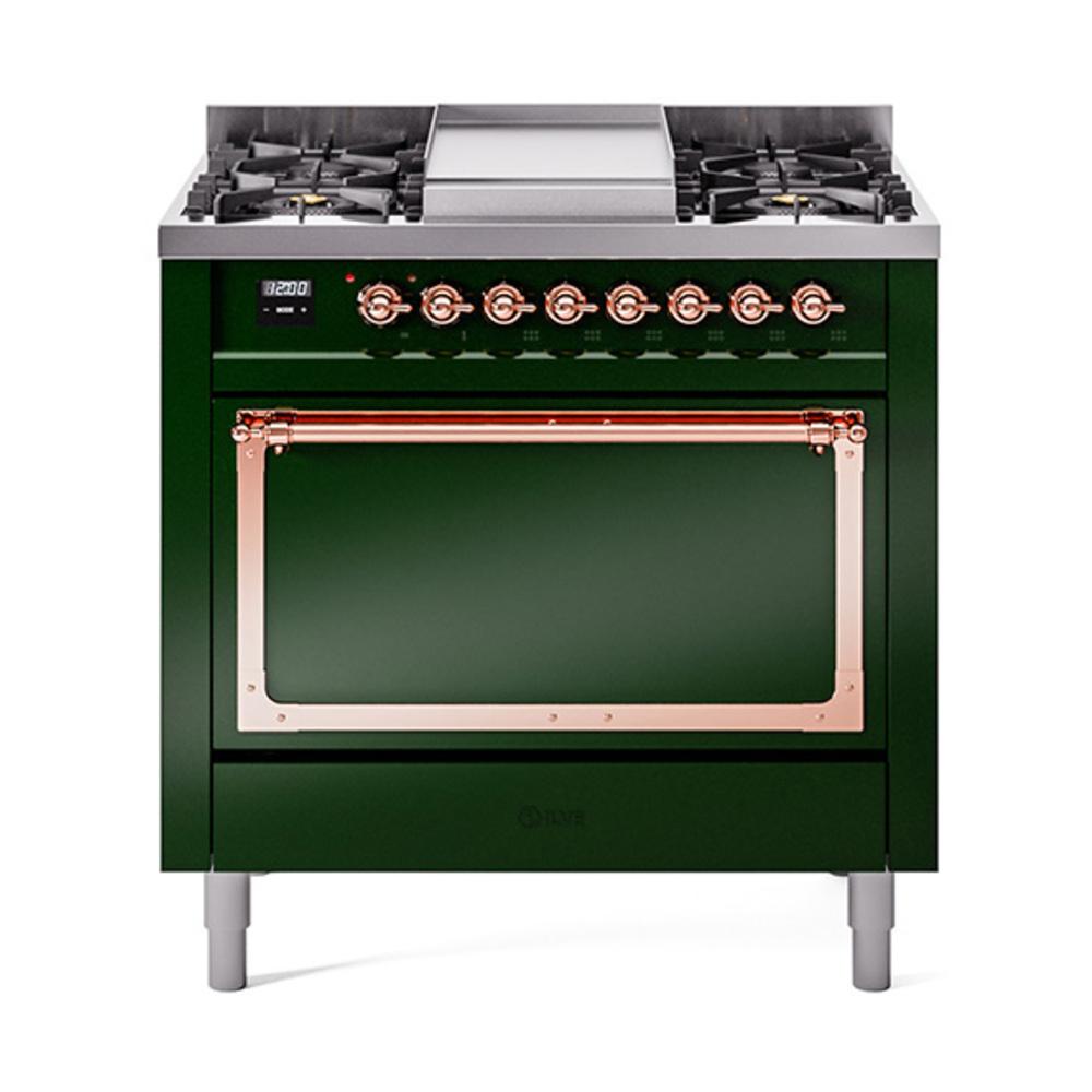 Ilve UN36FQNMPEGPLP Ilve Un36Fqnmpegplp Nostalgie Ii Noblesse 36" Dual Fuel Range (Liquid Propane, Solid Door, Emerald Green, Copper)
