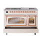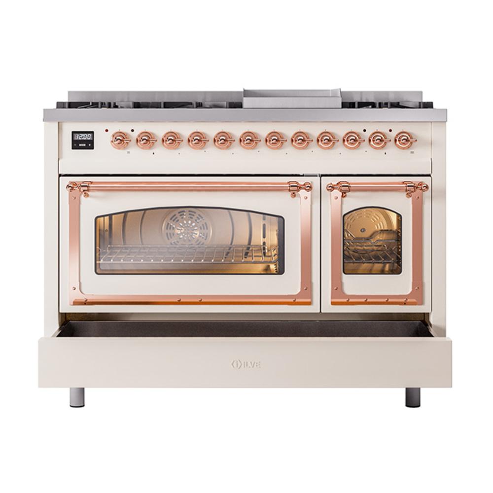 Ilve UN48FNMPAWP Ilve Un48Fnmpawp Nostalgie Ii Noblesse 48" Dual Fuel Range (8 Sealed Burners + Griddle, Natural Gas, Triple Glass Door, Antique White, Copper)