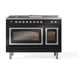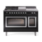 Ilve UN48FSNMPBKC Ilve Un48Fsnmpbkc Nostalgie Ii Noblesse 48" Dual Fuel Range (5 Sealed Burners + Griddle + French Top, Natural Gas, Triple Glass Door, Glossy Black, Chrome)