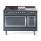 Ilve UN48FSQNMPBGC Ilve Un48Fsqnmpbgc Nostalgie Ii Noblesse 48" Dual Fuel Range (5 Sealed Burners + Griddle + French Top, Natural Gas, Solid Door, Blue Grey, Chrome)