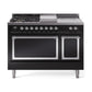 Ilve UN48FSQNMPBKC Ilve Un48Fsqnmpbkc Nostalgie Ii Noblesse 48" Dual Fuel Range (5 Sealed Burners + Griddle + French Top, Natural Gas, Solid Door, Glossy Black, Chrome)