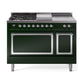 Ilve UN48FSQNMPEGC Ilve Un48Fsqnmpegc Nostalgie Ii Noblesse 48" Dual Fuel Range (5 Sealed Burners + Griddle + French Top, Natural Gas, Solid Door, Emerald Green, Chrome)