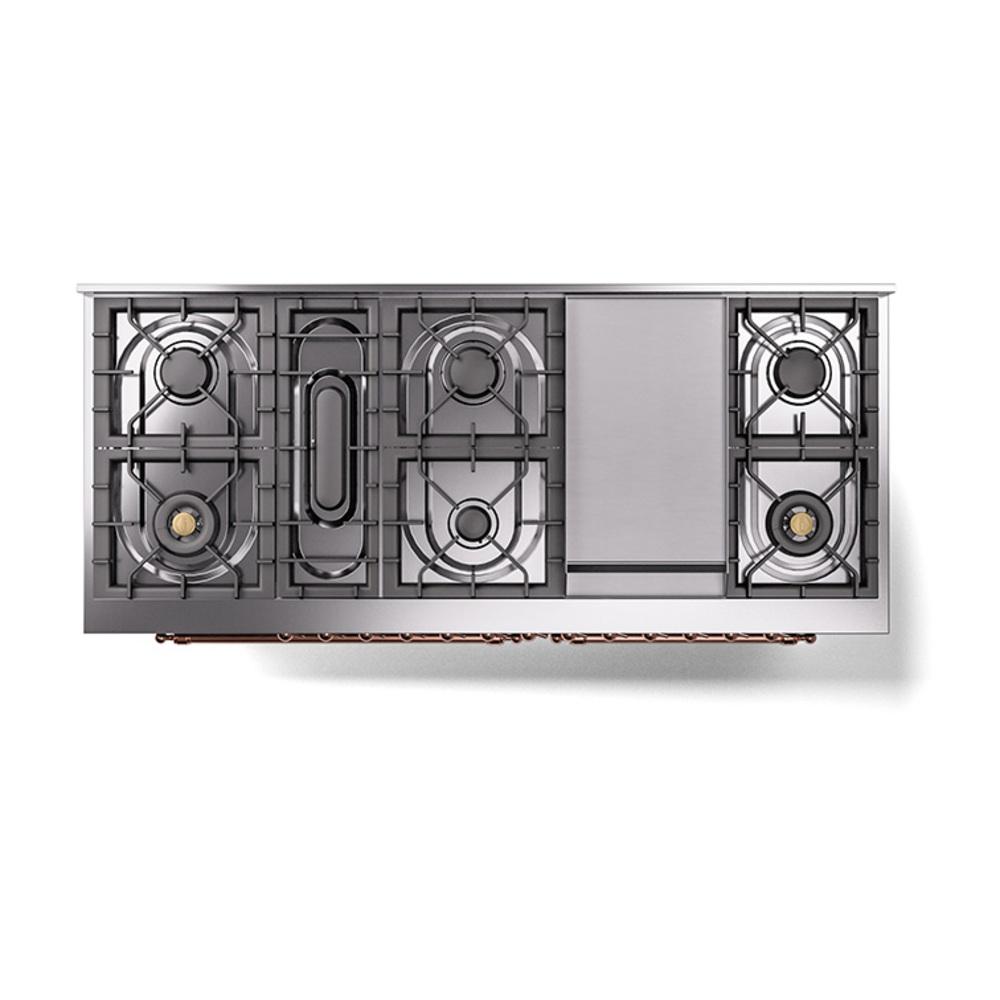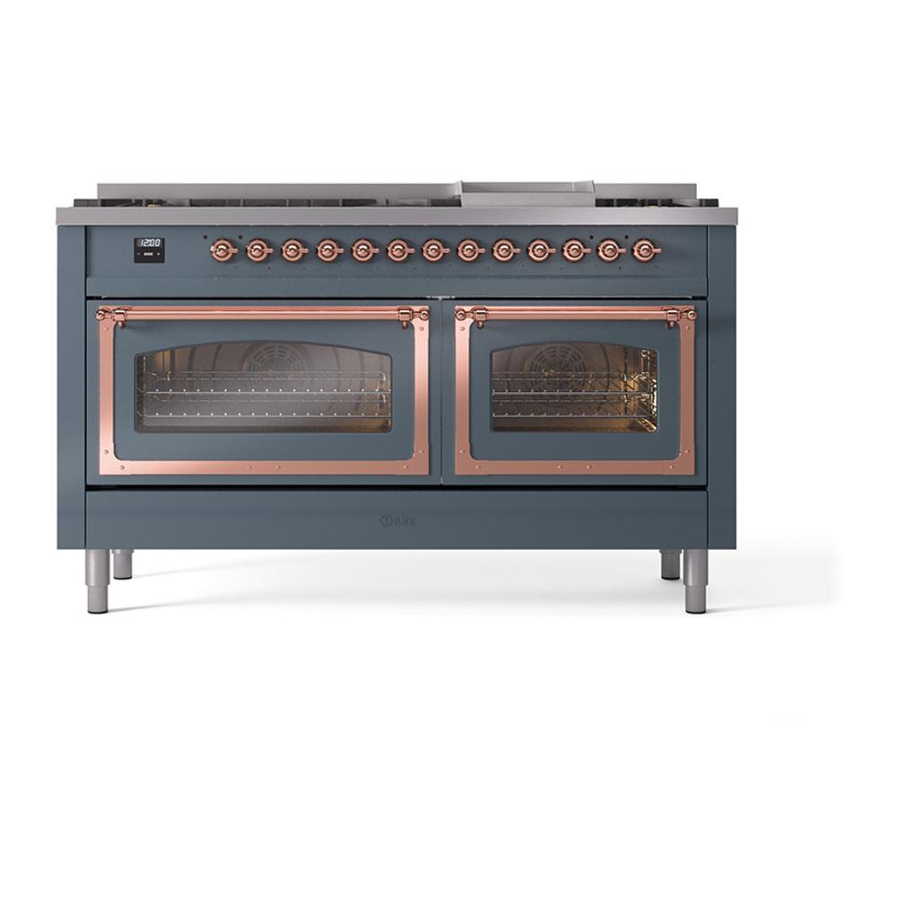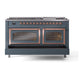 Ilve UN60FNMPBGP Ilve Un60Fnmpbgp Nostalgie Ii Noblesse 60" Dual Fuel Range (9 Sealed Burners + Griddle, Natural Gas, Triple Glass Door, Blue Grey, Copper)
