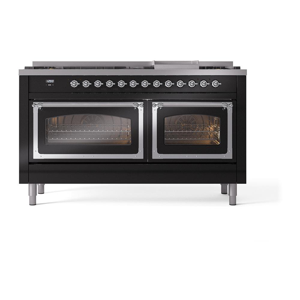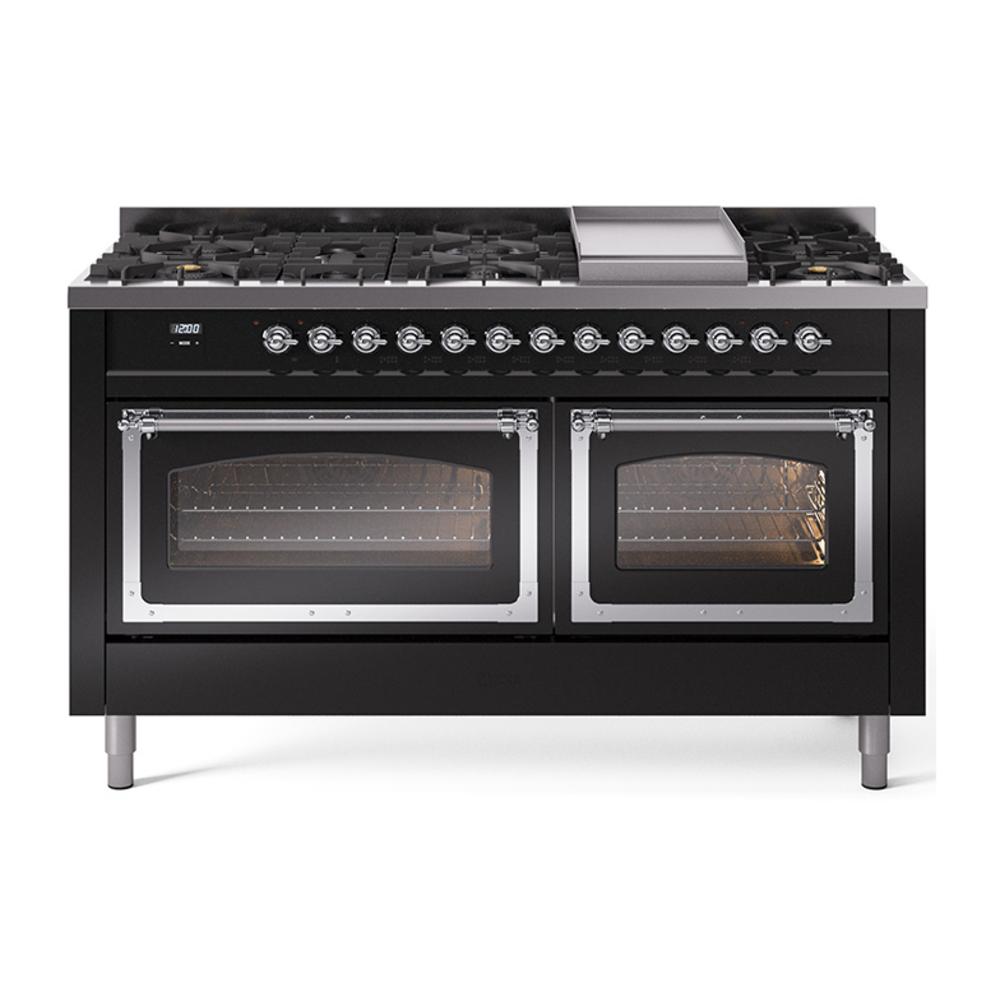 Ilve UN60FNMPBKCLP Ilve Un60Fnmpbkclp Nostalgie Ii Noblesse 60" Dual Fuel Range (9 Sealed Burners + Griddle, Liquid Propane, Triple Glass Door, Glossy Black, Chrome)