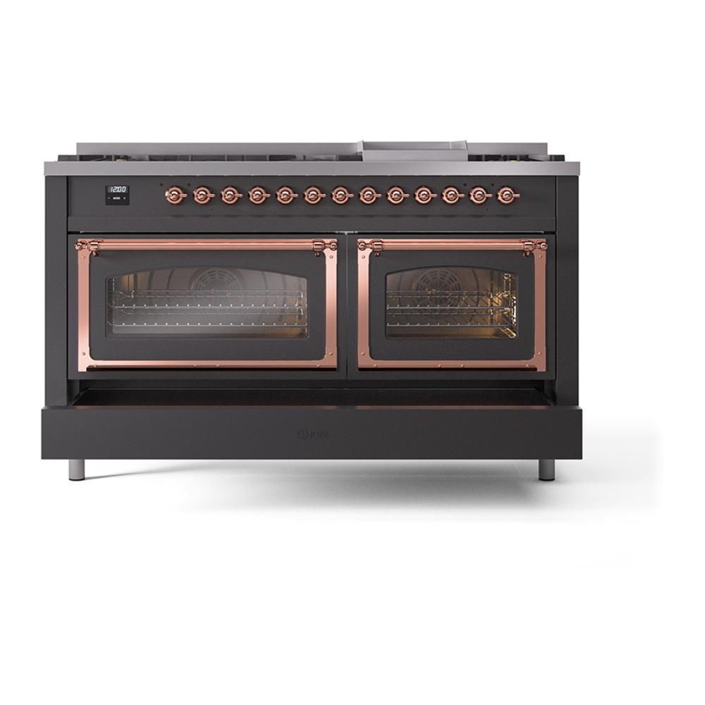 Ilve UN60FNMPMGP Ilve Un60Fnmpmgp Nostalgie Ii Noblesse 60" Dual Fuel Range (9 Sealed Burners + Griddle, Natural Gas, Triple Glass Door, Graphite Matte, Copper)