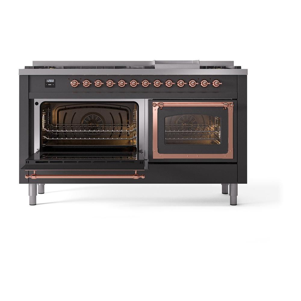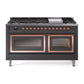 Ilve UN60FNMPMGPLP Ilve Un60Fnmpmgplp Nostalgie Ii Noblesse 60" Dual Fuel Range (9 Sealed Burners + Griddle, Liquid Propane, Triple Glass Door, Graphite Matte, Copper)