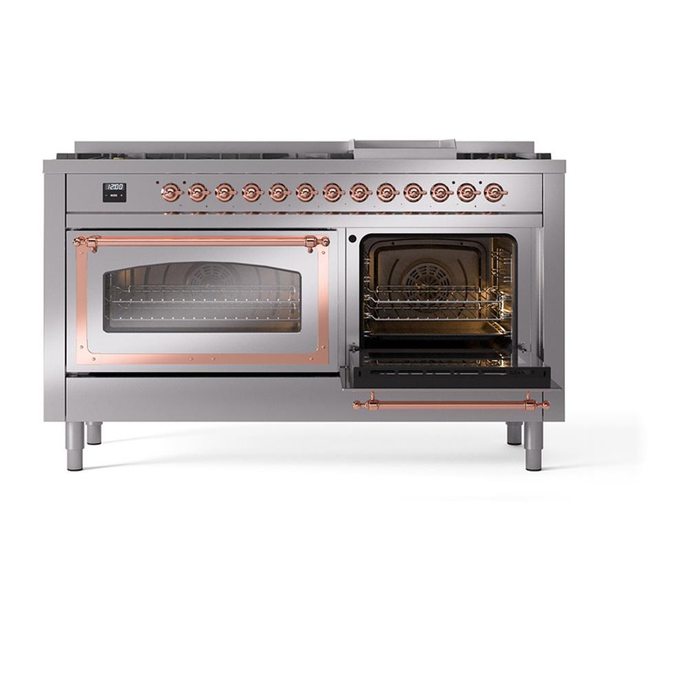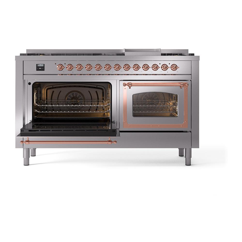 Ilve UN60FNMPSSPLP Ilve Un60Fnmpssplp Nostalgie Ii Noblesse 60" Dual Fuel Range (9 Sealed Burners + Griddle, Liquid Propane, Triple Glass Door, Stainless Steel, Copper)