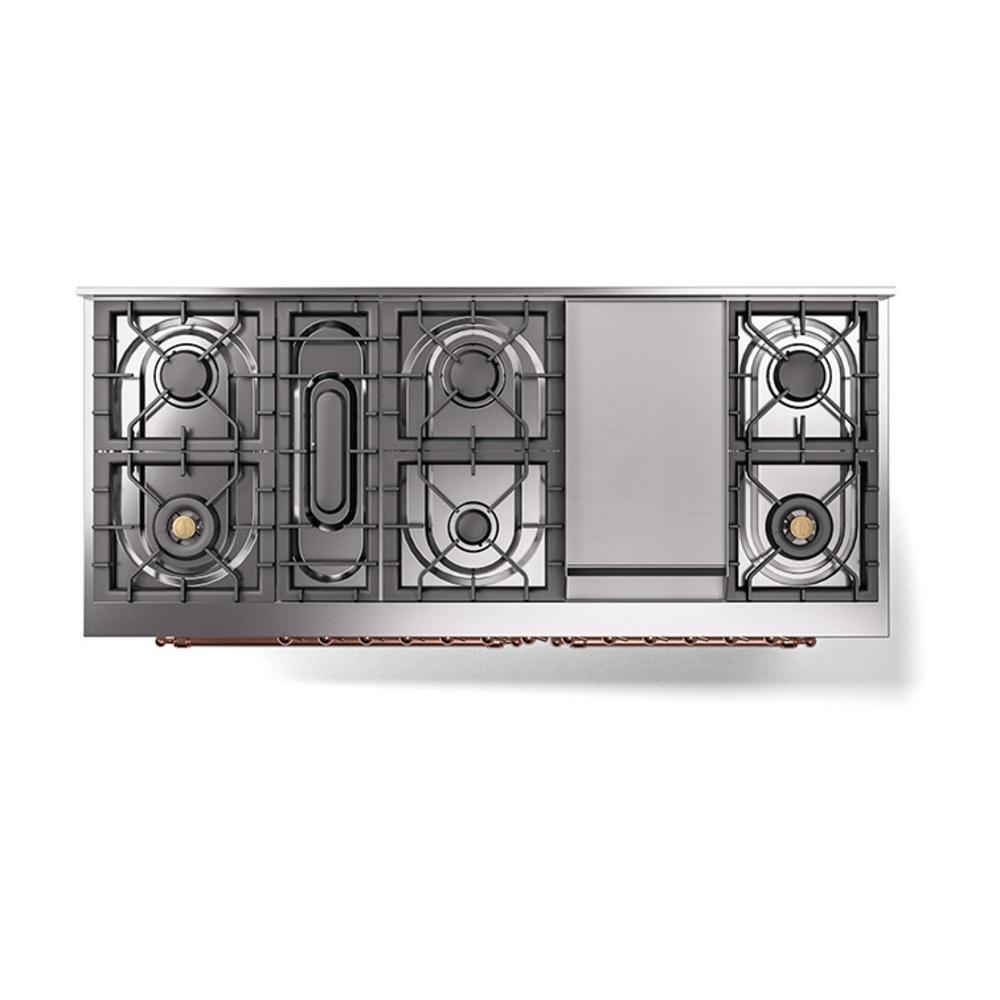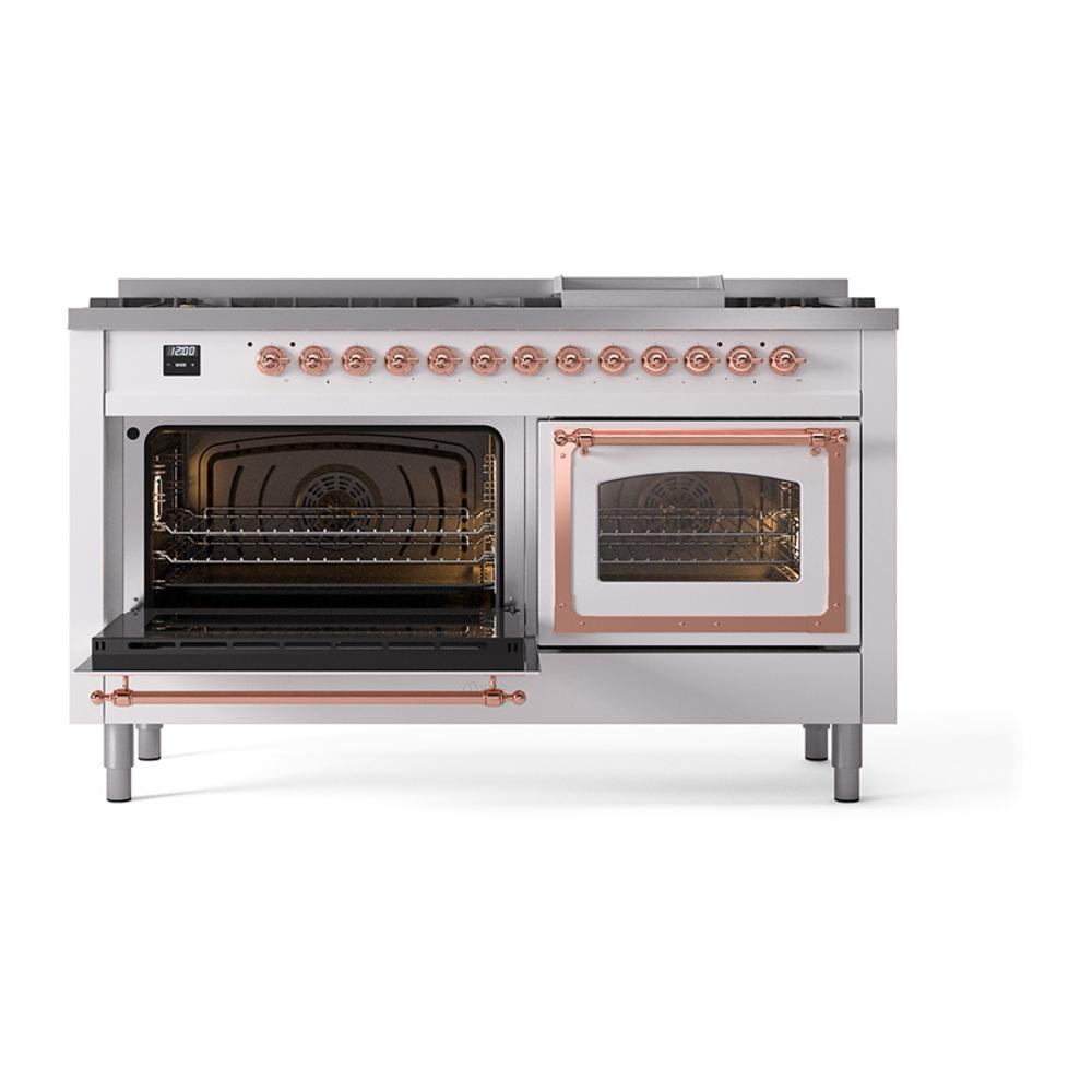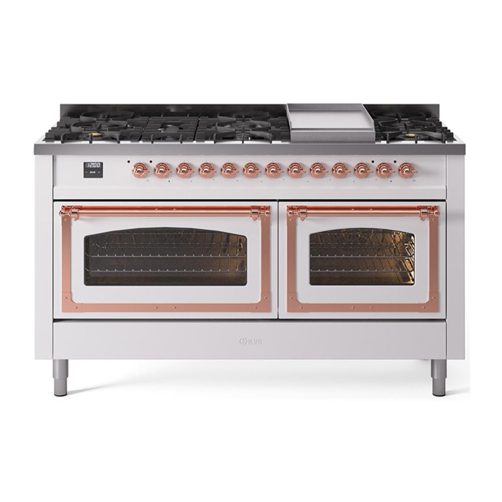 Ilve UN60FNMPWHPLP Ilve Un60Fnmpwhplp Nostalgie Ii Noblesse 60" Dual Fuel Range (9 Sealed Burners + Griddle, Liquid Propane, Triple Glass Door, White, Copper)