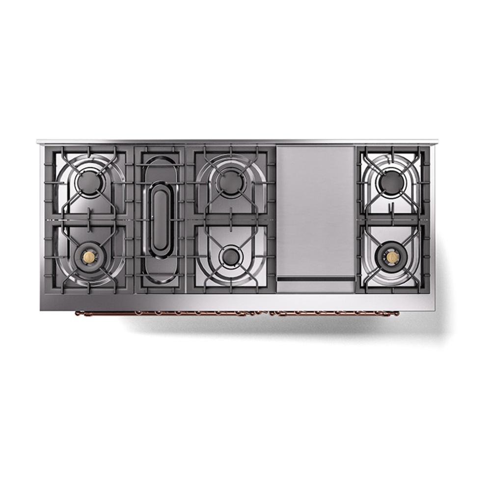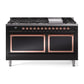 Ilve UN60FQNMPBKP Ilve Un60Fqnmpbkp Nostalgie Ii Noblesse 60" Dual Fuel Range (9 Sealed Burners + Griddle, Natural Gas, Solid Door, Glossy Black, Copper)