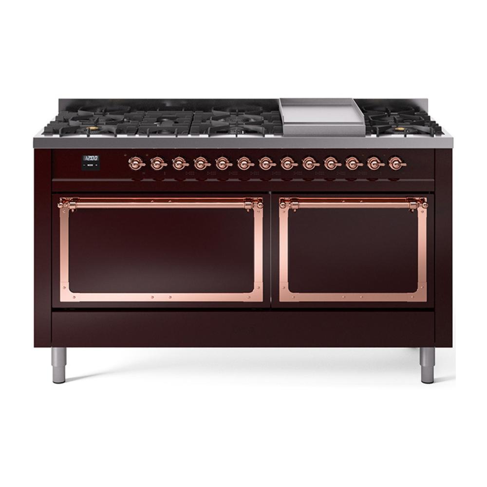 Ilve UN60FQNMPBUP Ilve Un60Fqnmpbup Nostalgie Ii Noblesse 60" Dual Fuel Range (9 Sealed Burners + Griddle, Natural Gas, Solid Door, Burgundy, Copper)