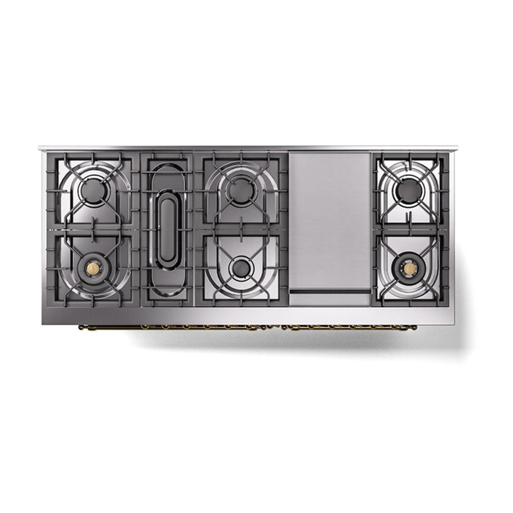 Ilve UN60FQNMPEGGLP Ilve Un60Fqnmpegglp Nostalgie Ii Noblesse 60" Dual Fuel Range (9 Sealed Burners + Griddle, Liquid Propane, Solid Door, Emerald Green, Brass)