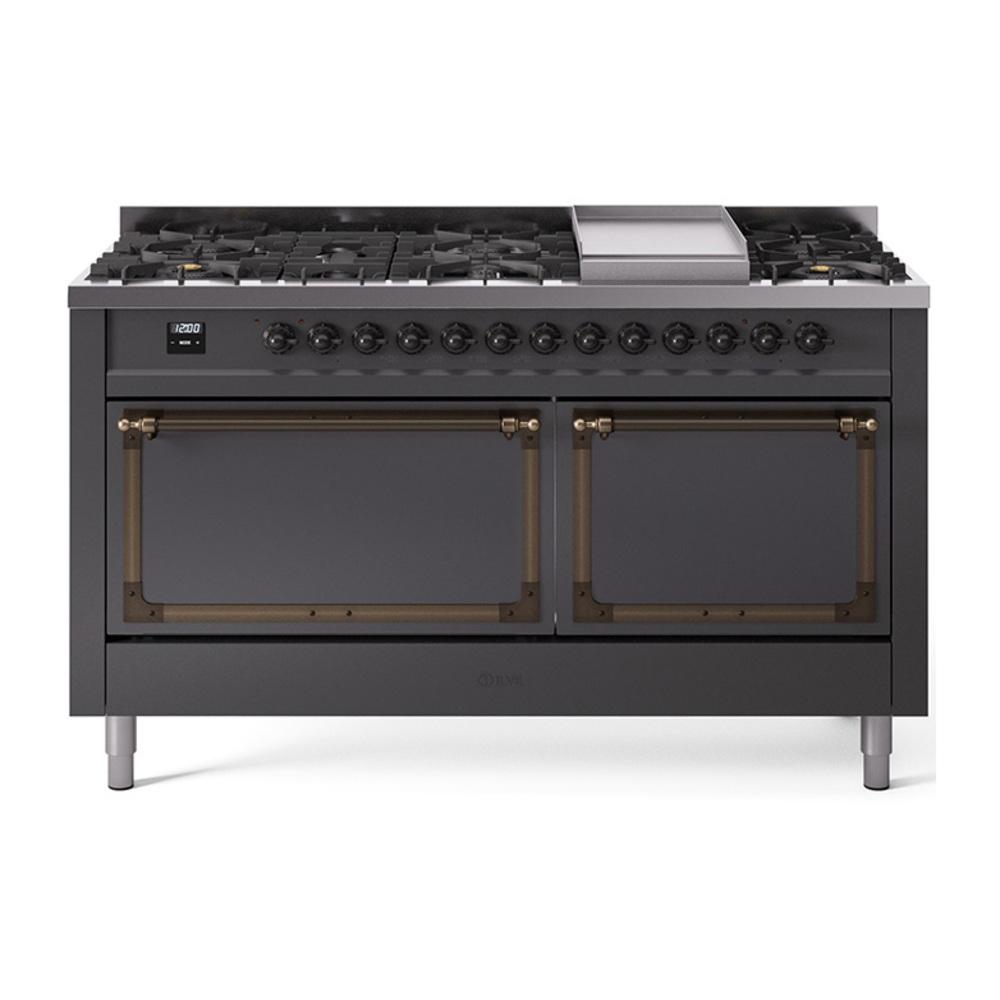 Ilve UN60FQNMPMGB Ilve Un60Fqnmpmgb Nostalgie Ii Noblesse 60" Dual Fuel Range (9 Sealed Burners + Griddle, Natural Gas, Solid Door, Graphite Matte, Burnished)