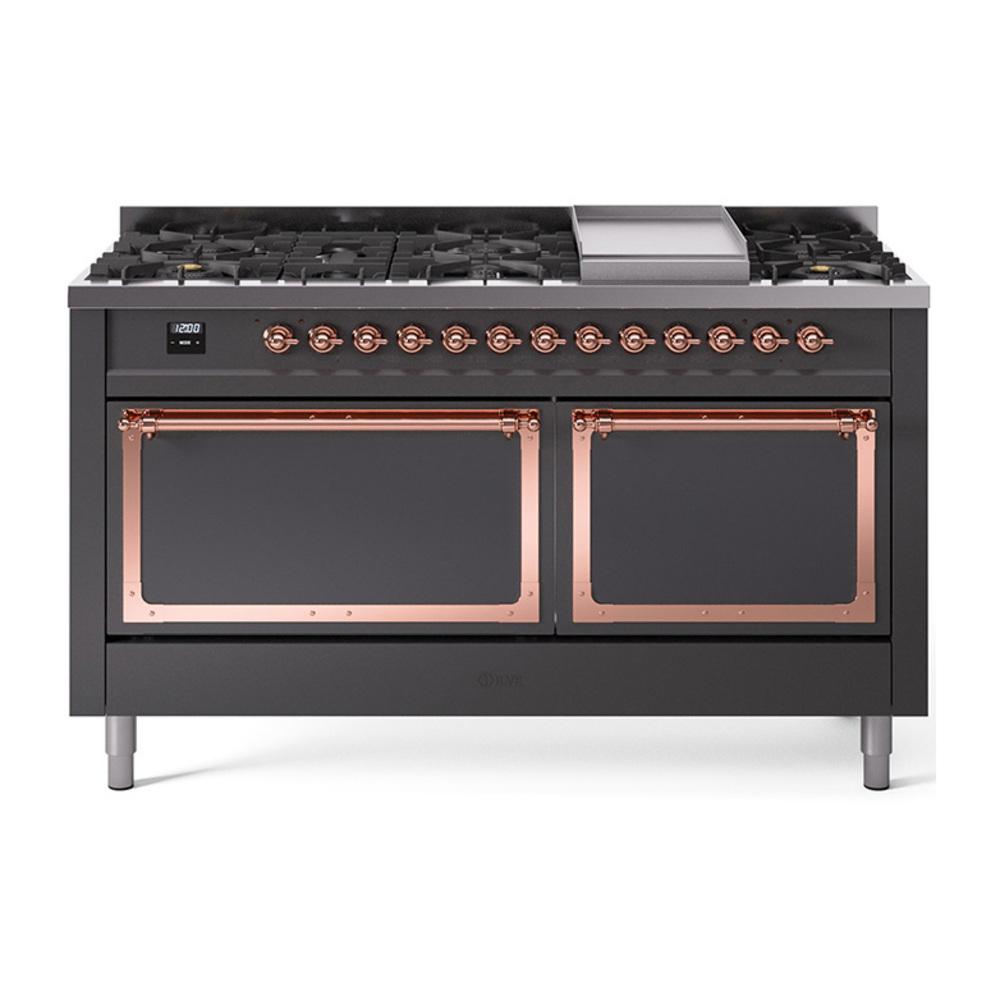 Ilve UN60FQNMPMGP Ilve Un60Fqnmpmgp Nostalgie Ii Noblesse 60" Dual Fuel Range (9 Sealed Burners + Griddle, Natural Gas, Solid Door, Graphite Matte, Copper)