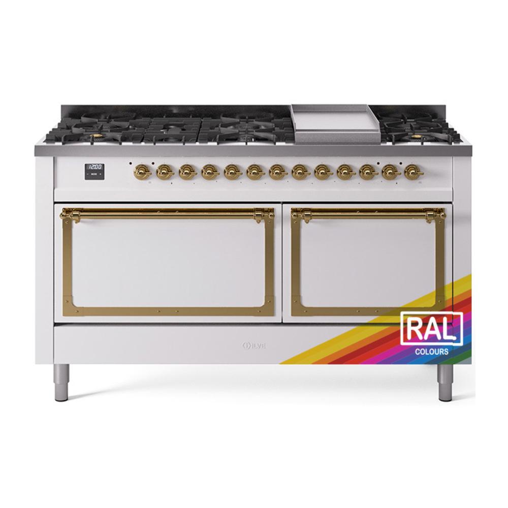 Ilve UN60FQNMPRAGLP Ilve Un60Fqnmpraglp Nostalgie Ii Noblesse 60" Dual Fuel Range (9 Sealed Burners + Griddle, Liquid Propane, Solid Door, Ral, Brass)