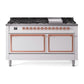 Ilve UN60FQNMPWHP Ilve Un60Fqnmpwhp Nostalgie Ii Noblesse 60" Dual Fuel Range (9 Sealed Burners + Griddle, Natural Gas, Solid Door, White, Copper)
