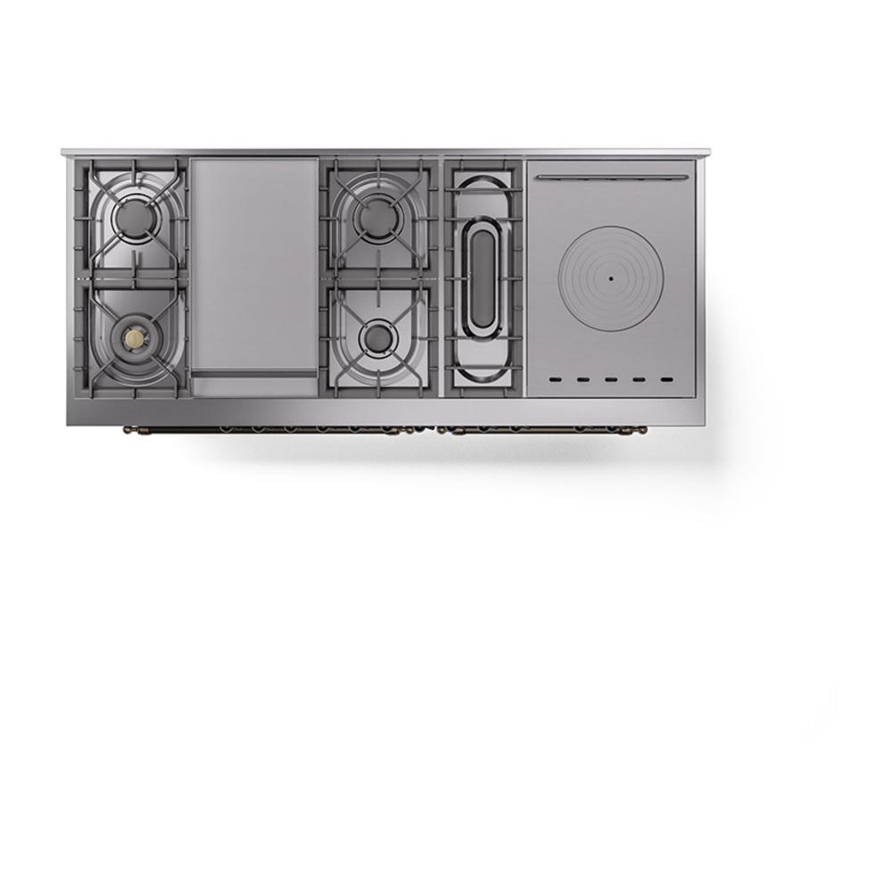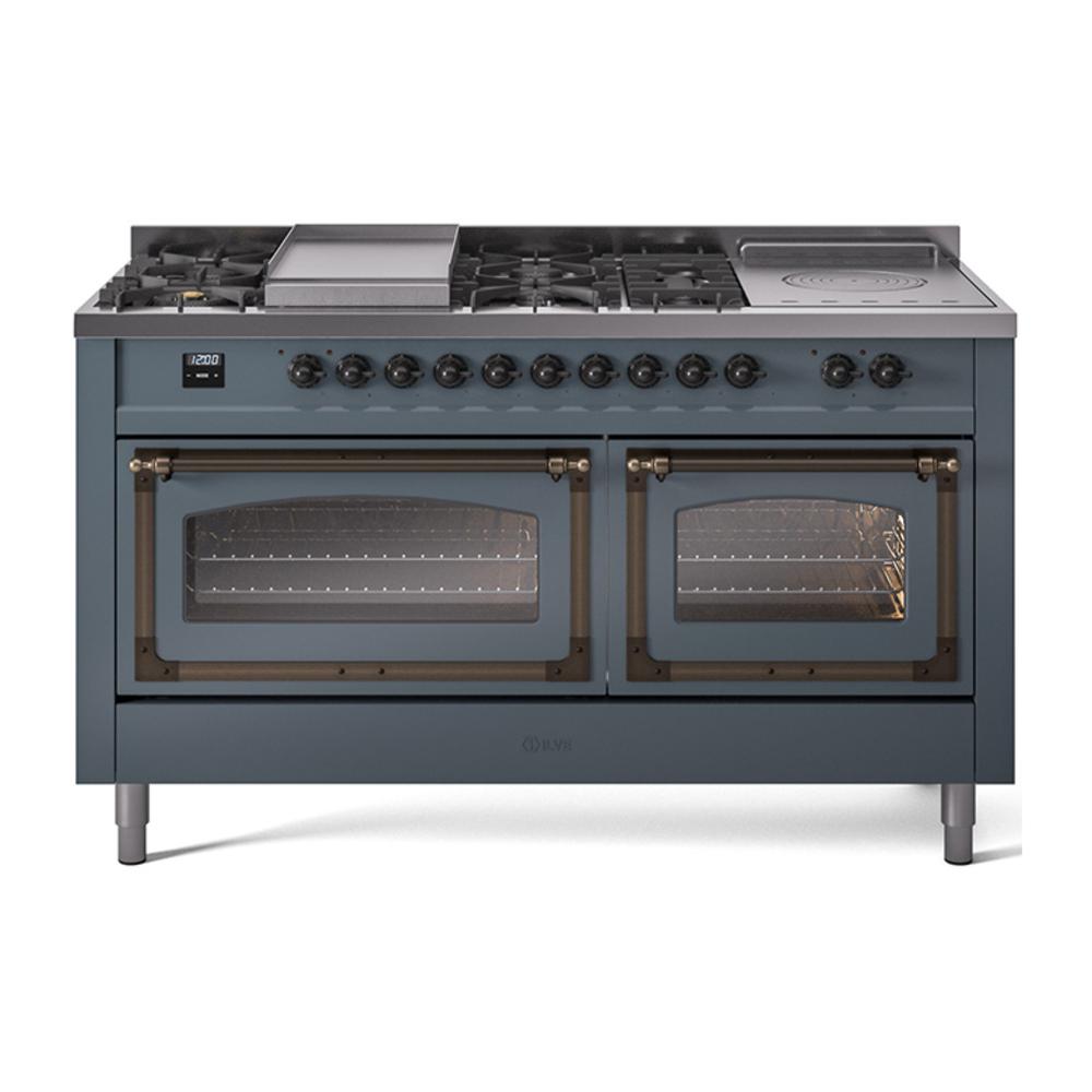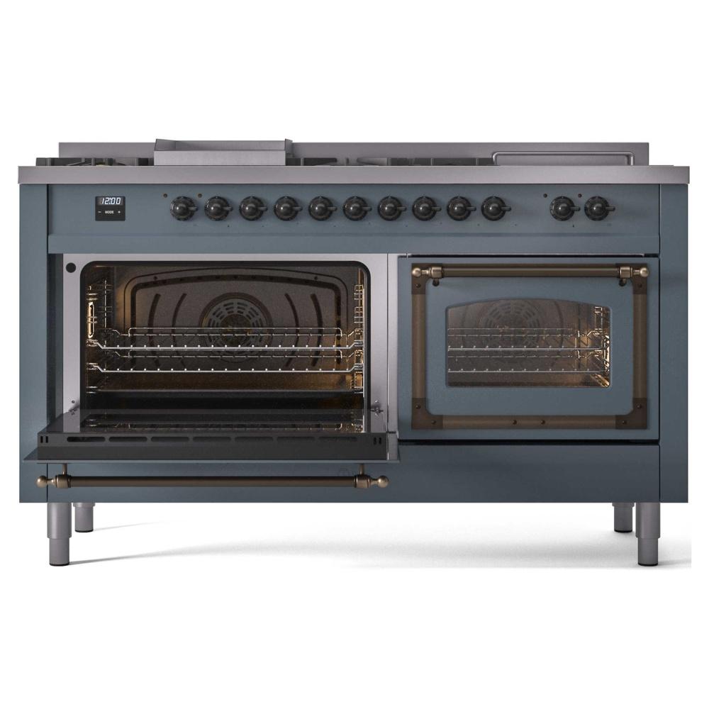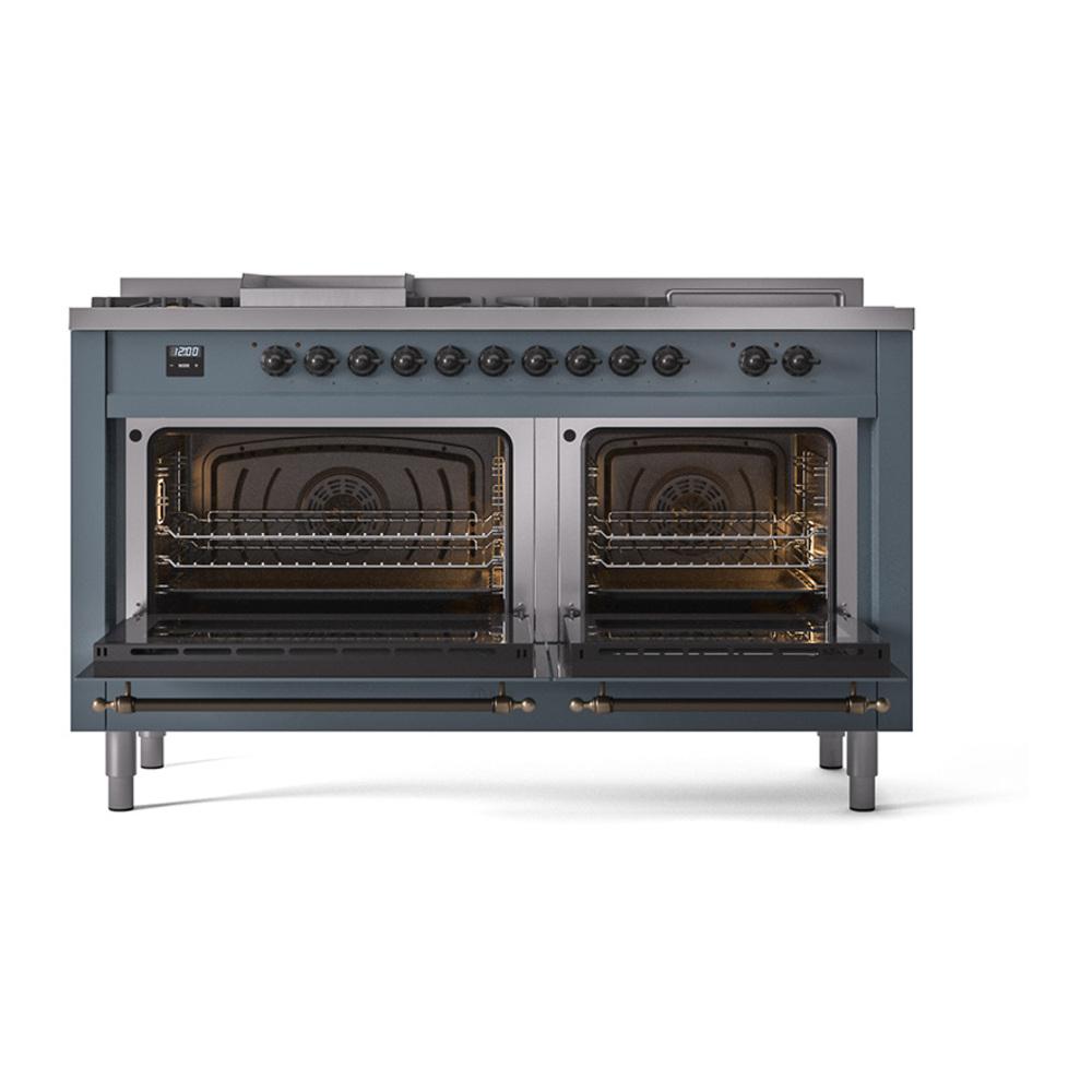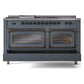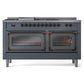 Ilve UN60FSNMPBGBLP Ilve Un60Fsnmpbgblp Nostalgie Ii Noblesse 60" Dual Fuel Range (7 Sealed Burners + Griddle + French Top, Liquid Propane, Triple Glass Door, Blue Grey, Burnished)