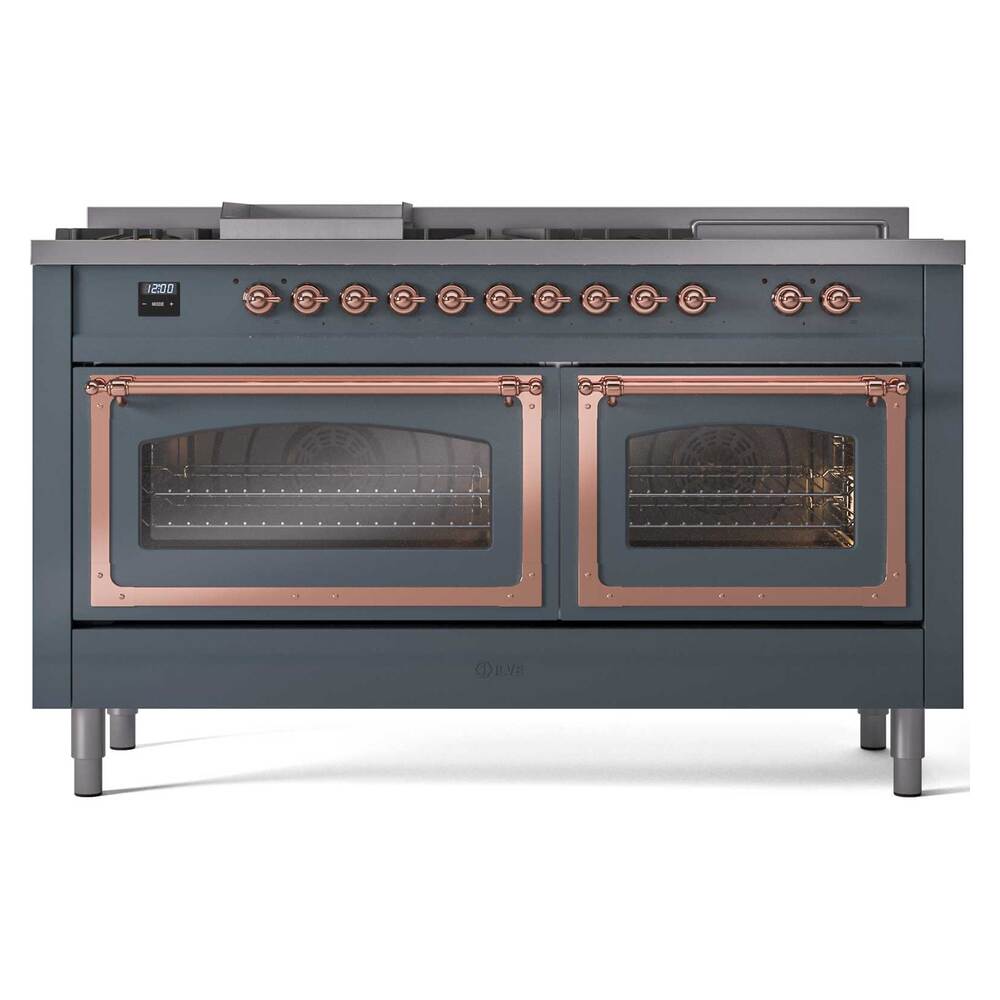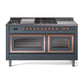 Ilve UN60FSNMPBGPLP Ilve Un60Fsnmpbgplp Nostalgie Ii Noblesse 60" Dual Fuel Range (7 Sealed Burners + Griddle + French Top, Liquid Propane, Triple Glass Door, Blue Grey, Copper)