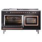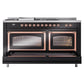 Ilve UN60FSNMPBKP Ilve Un60Fsnmpbkp Nostalgie Ii Noblesse 60" Dual Fuel Range (7 Sealed Burners + Griddle + French Top, Natural Gas, Triple Glass Door, Glossy Black, Copper)