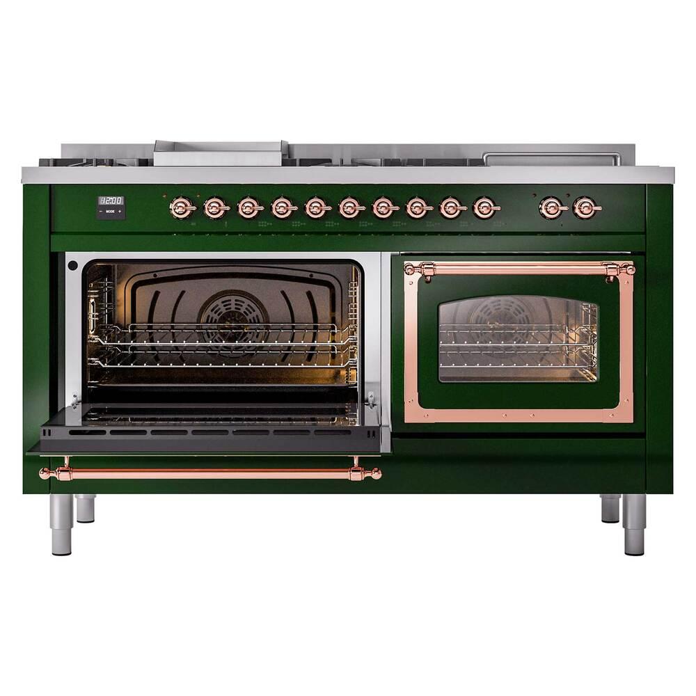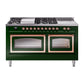 Ilve UN60FSNMPEGP Ilve Un60Fsnmpegp Nostalgie Ii Noblesse 60" Dual Fuel Range (7 Sealed Burners + Griddle + French Top, Natural Gas, Triple Glass Door, Emerald Green, Copper)