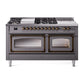 Ilve UN60FSNMPMGBLP Ilve Un60Fsnmpmgblp Nostalgie Ii Noblesse 60" Dual Fuel Range (7 Sealed Burners + Griddle + French Top, Liquid Propane, Triple Glass Door, Graphite Matte, Burnished)
