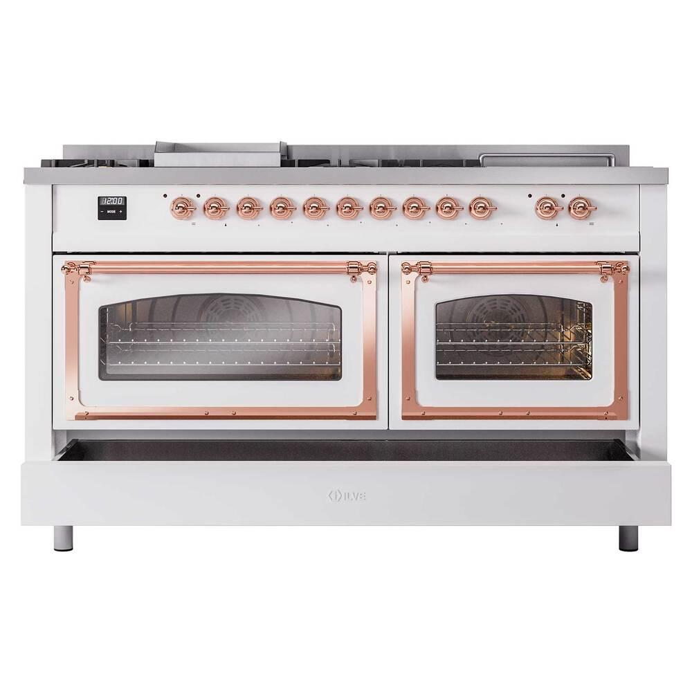 Ilve UN60FSNMPRAP Ilve Un60Fsnmprap Nostalgie Ii Noblesse 60" Dual Fuel Range (7 Sealed Burners + Griddle + French Top, Natural Gas, Triple Glass Door, Ral, Copper)
