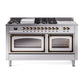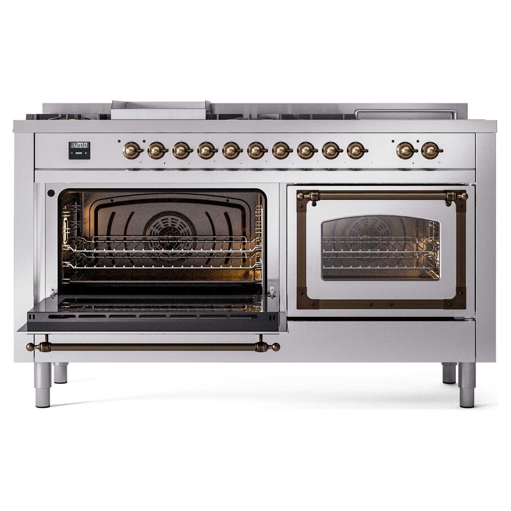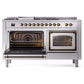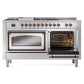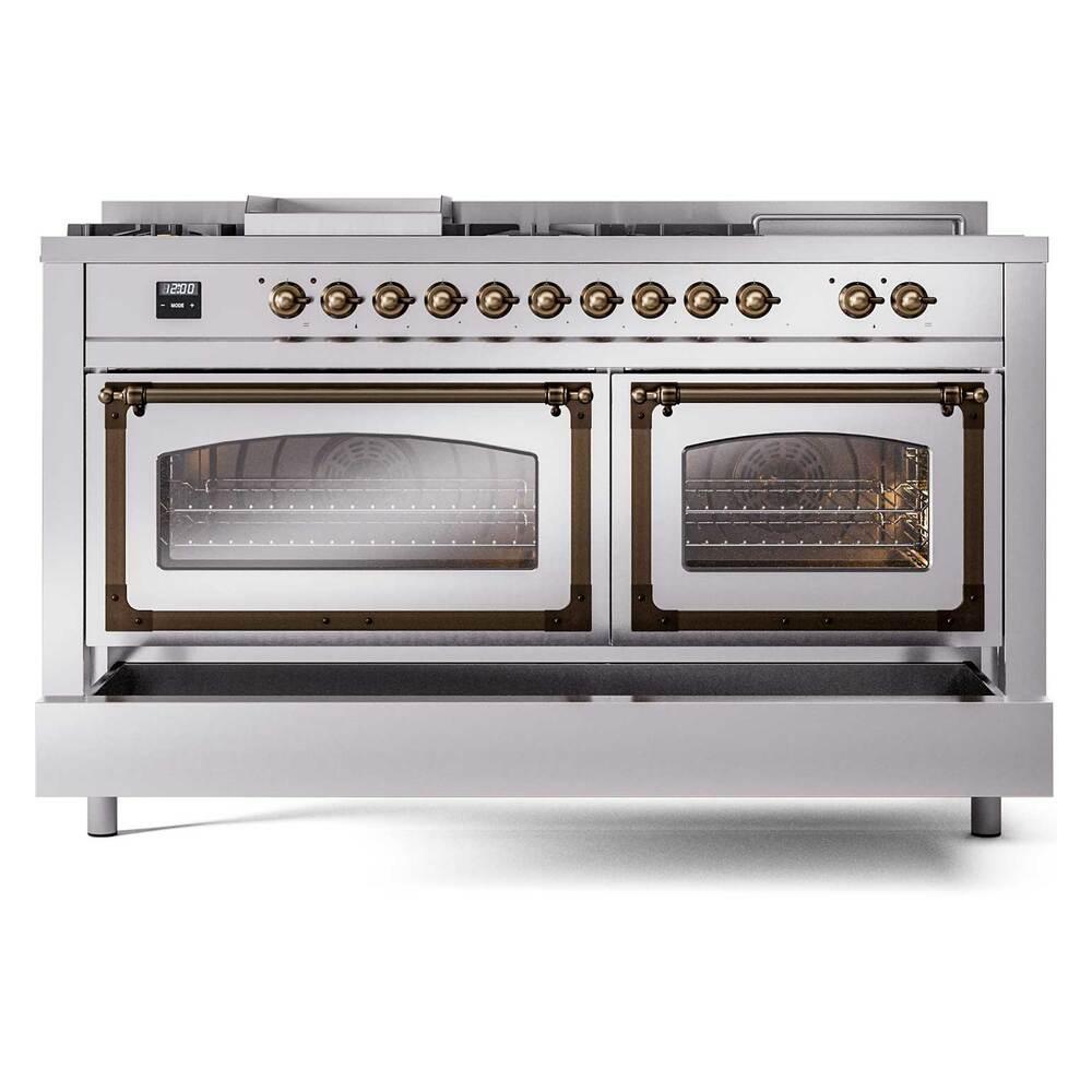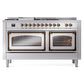 Ilve UN60FSNMPSSBLP Ilve Un60Fsnmpssblp Nostalgie Ii Noblesse 60" Dual Fuel Range (7 Sealed Burners + Griddle + French Top, Liquid Propane, Triple Glass Door, Stainless Steel, Burnished)
