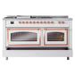 Ilve UN60FSNMPWHPLP Ilve Un60Fsnmpwhplp Nostalgie Ii Noblesse 60" Dual Fuel Range (7 Sealed Burners + Griddle + French Top, Liquid Propane, Triple Glass Door, White, Copper)