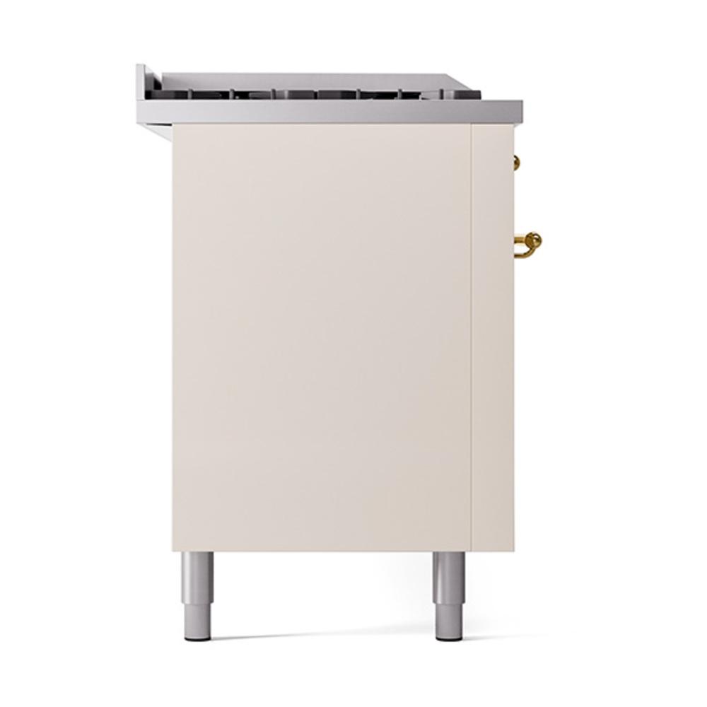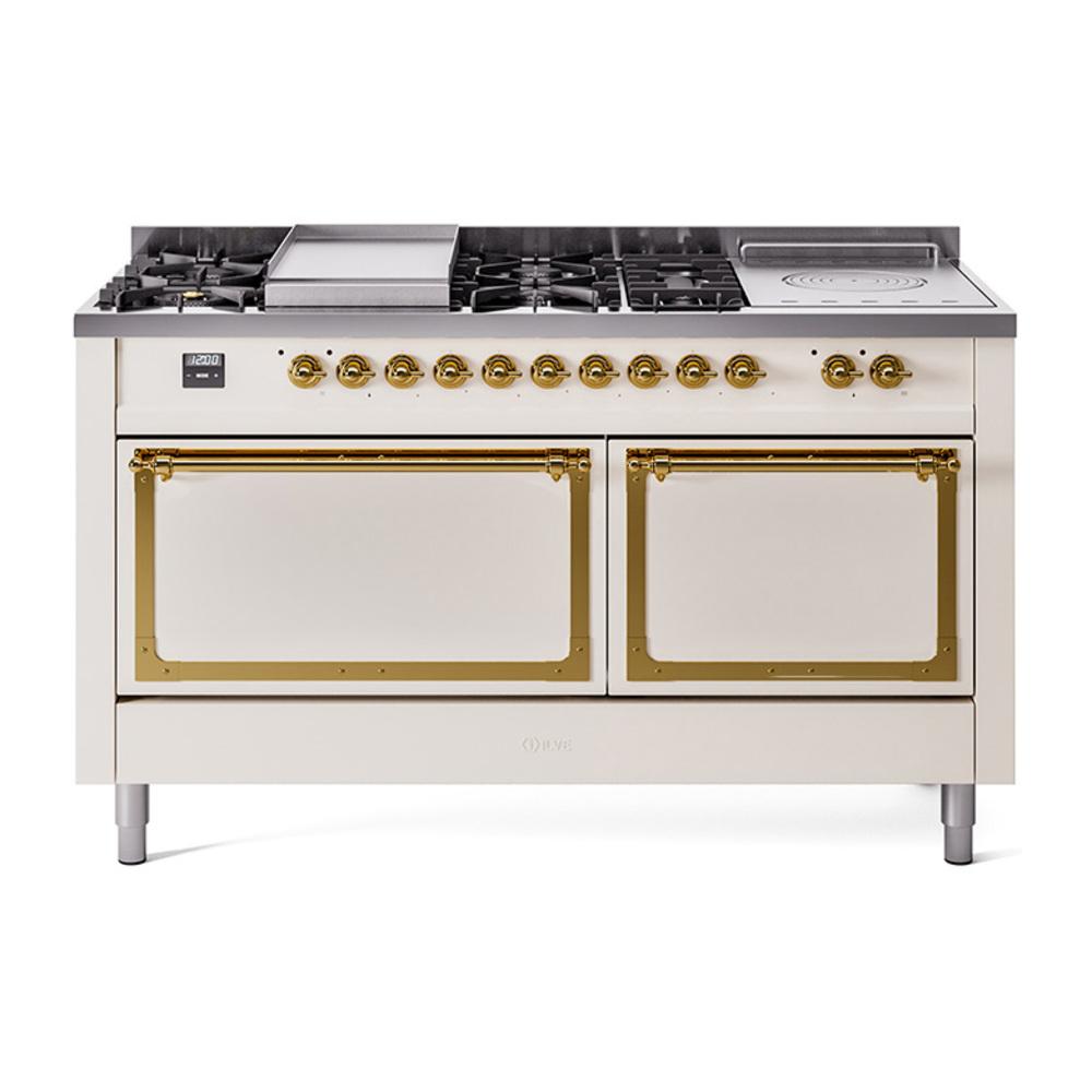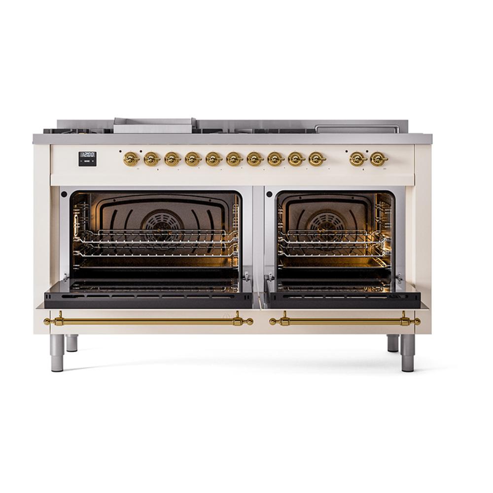 Ilve UN60FSQNMPAWGLP Ilve Un60Fsqnmpawglp Nostalgie Ii Noblesse 60" Dual Fuel Range (7 Sealed Burners + Griddle + French Top, Liquid Propane, Solid Door, Antique White, Brass)