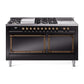 Ilve UN60FSQNMPBKB Ilve Un60Fsqnmpbkb Nostalgie Ii Noblesse 60" Dual Fuel Range (7 Sealed Burners + Griddle + French Top, Natural Gas, Solid Door, Glossy Black, Burnished)