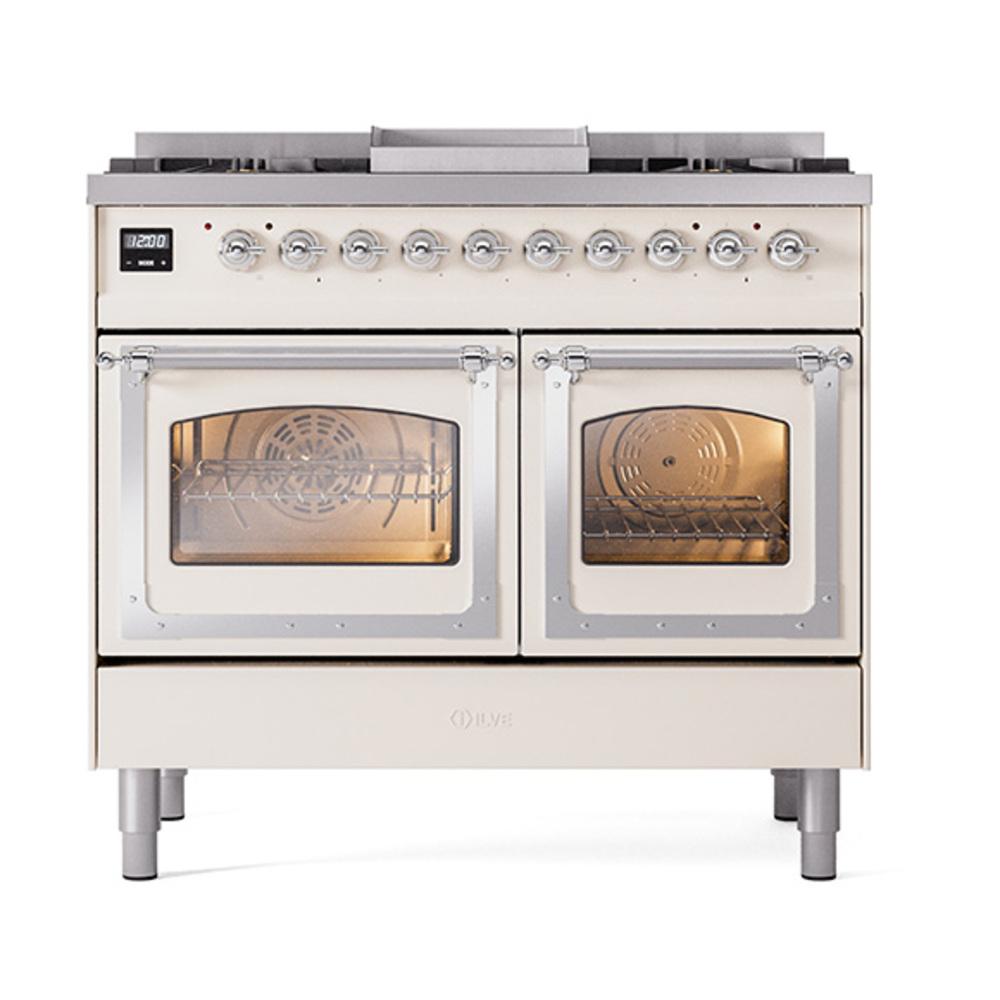 Ilve UND40FNMPAWC Ilve Und40Fnmpawc Nostalgie Ii Noblesse 40" Dual Fuel Range (Natural Gas, Triple Glass Door, Antique White, Chrome)