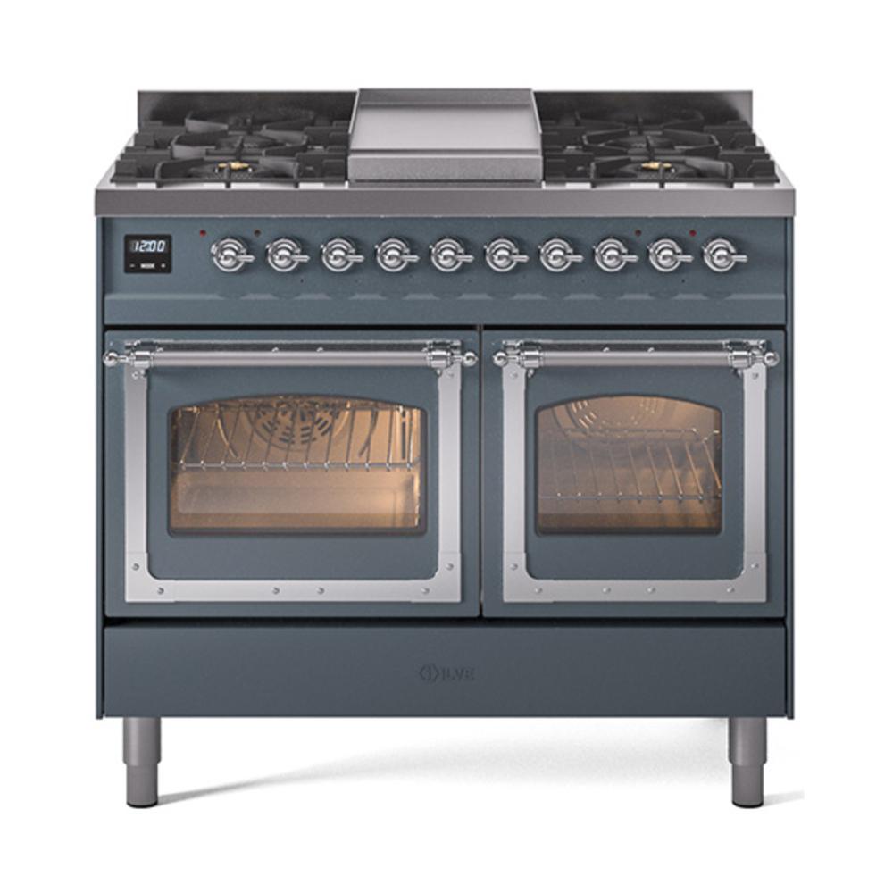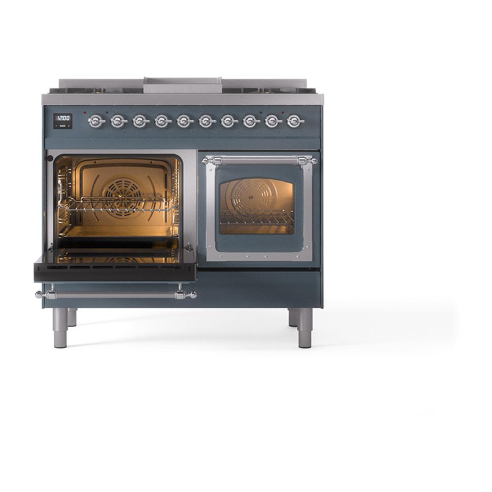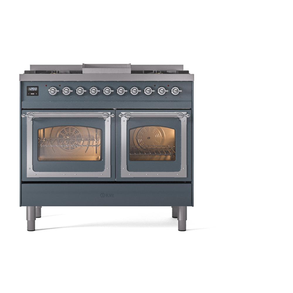 Ilve UND40FNMPBGCLP Ilve Und40Fnmpbgclp Nostalgie Ii Noblesse 40" Dual Fuel Range (Liquid Propane, Triple Glass Door, Blue Grey, Chrome)