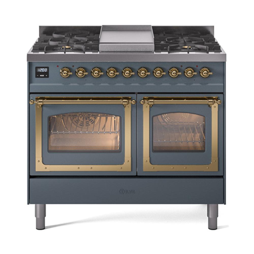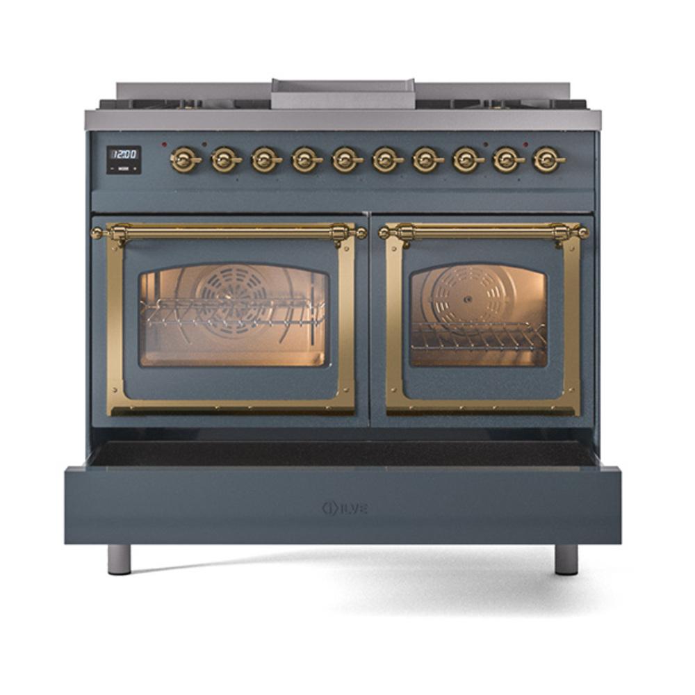 Ilve UND40FNMPBGG Ilve Und40Fnmpbgg Nostalgie Ii Noblesse 40" Dual Fuel Range (Natural Gas, Triple Glass Door, Blue Grey, Brass)