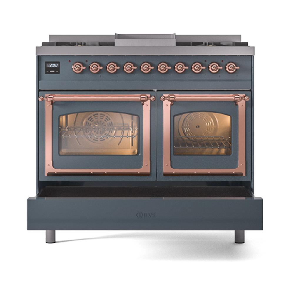 Ilve UND40FNMPBGP Ilve Und40Fnmpbgp Nostalgie Ii Noblesse 40" Dual Fuel Range (Natural Gas, Triple Glass Door, Blue Grey, Copper)