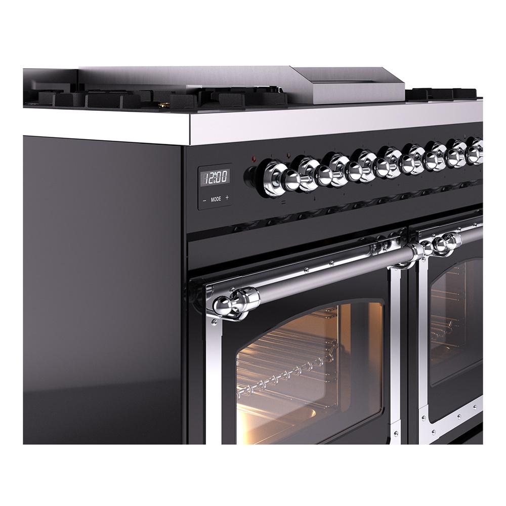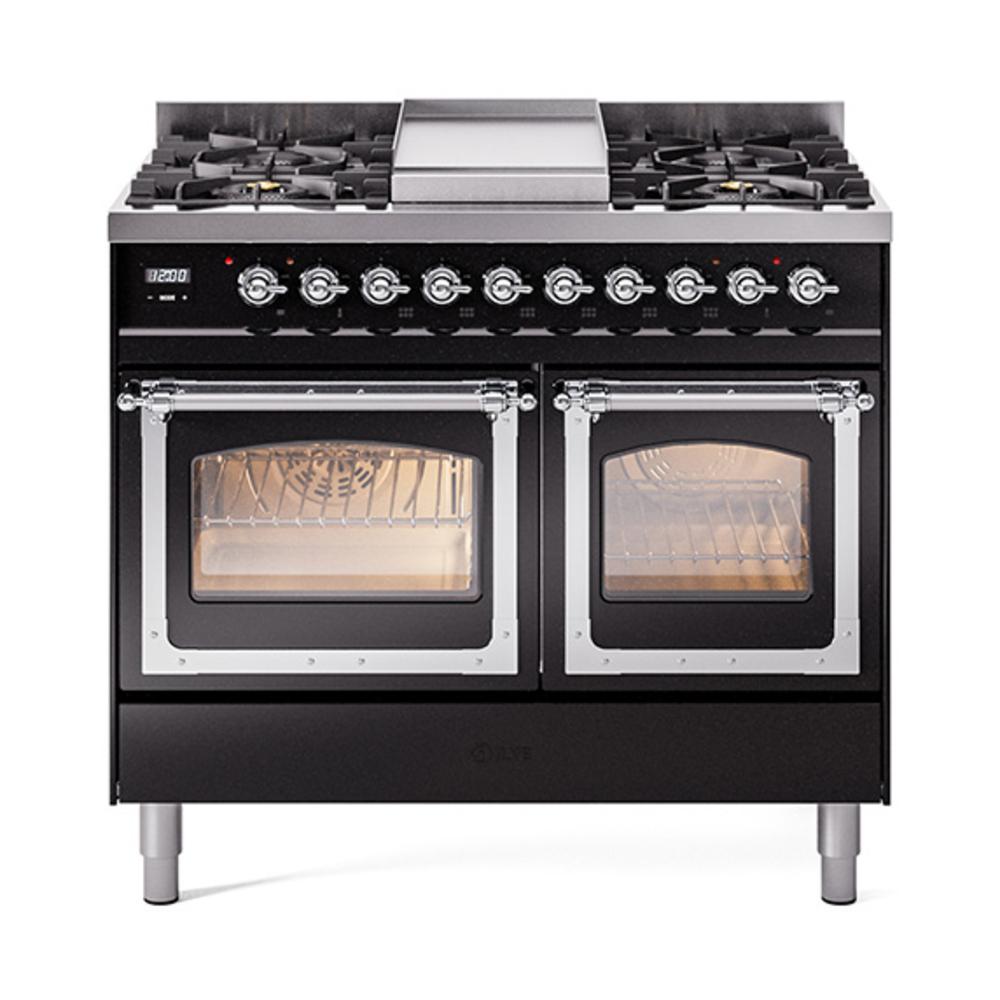Ilve UND40FNMPBKCLP Ilve Und40Fnmpbkclp Nostalgie Ii Noblesse 40" Dual Fuel Range (Liquid Propane, Triple Glass Door, Glossy Black, Chrome)