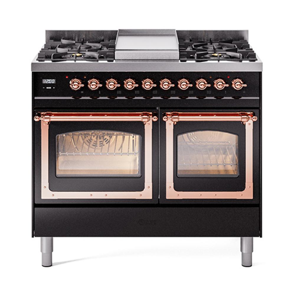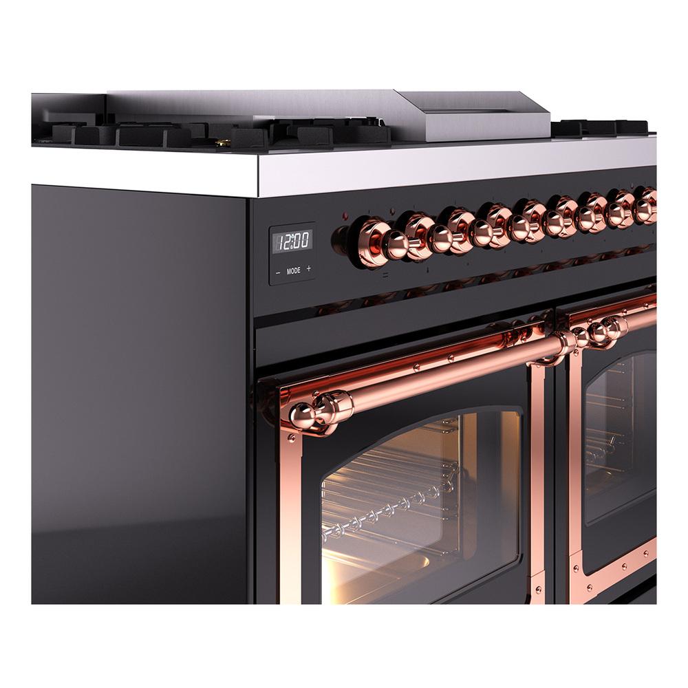 Ilve UND40FNMPBKP Ilve Und40Fnmpbkp Nostalgie Ii Noblesse 40" Dual Fuel Range (Natural Gas, Triple Glass Door, Glossy Black, Copper)