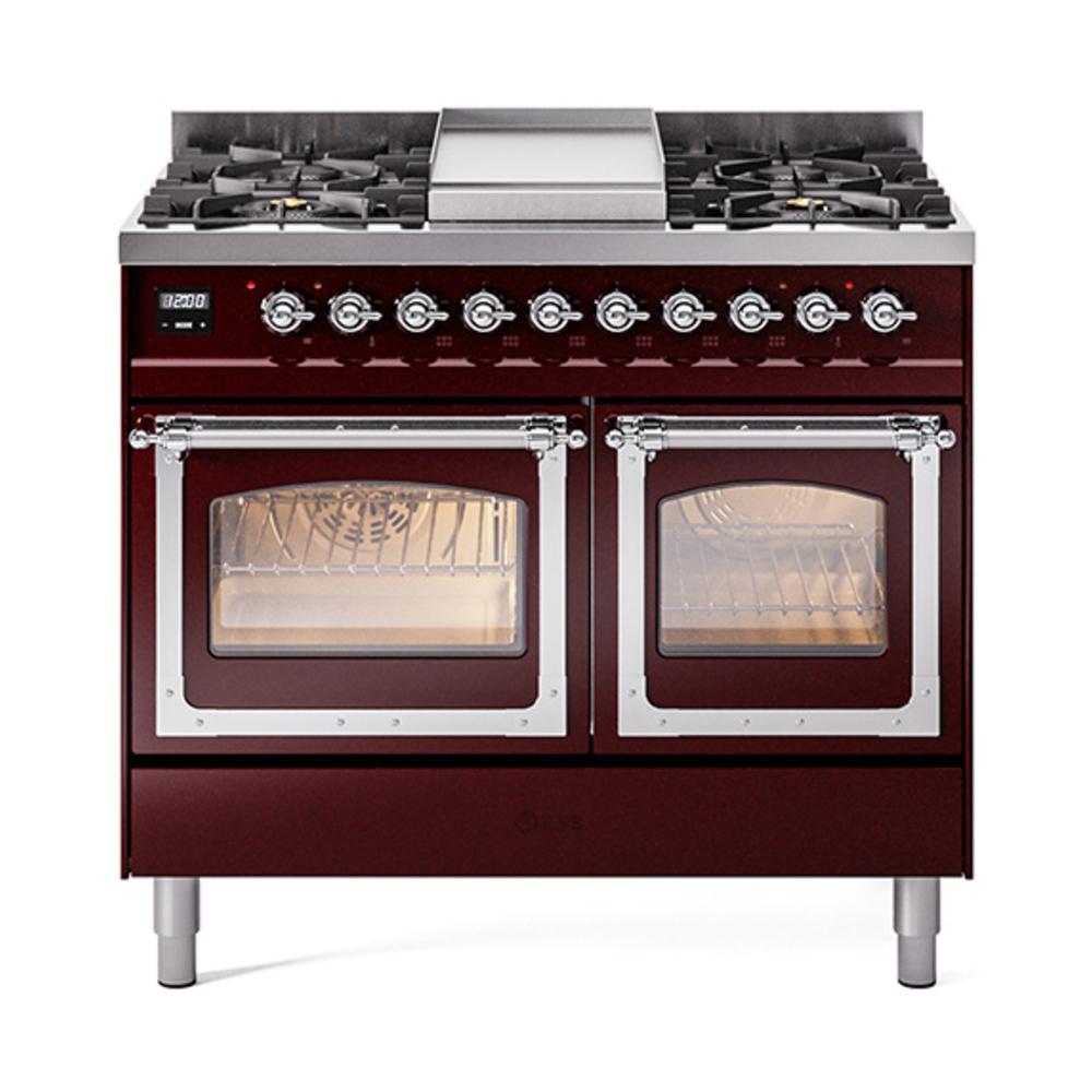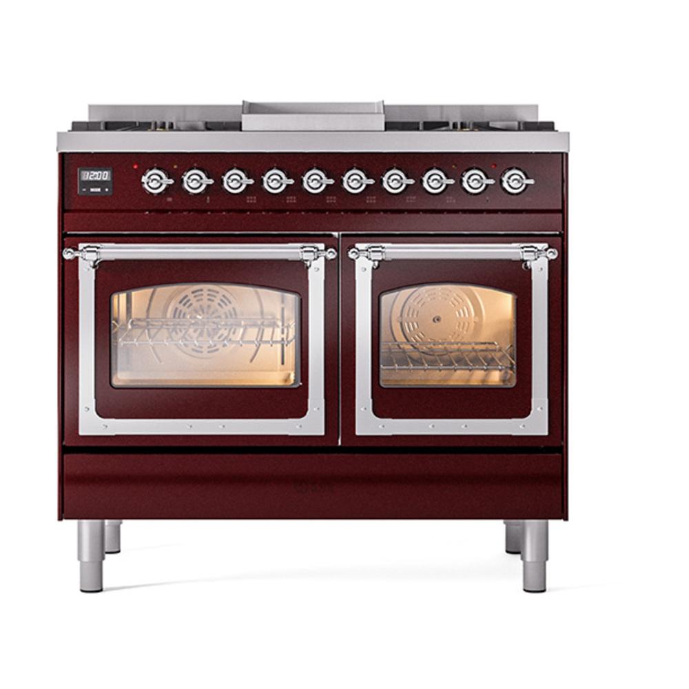 Ilve UND40FNMPBUCLP Ilve Und40Fnmpbuclp Nostalgie Ii Noblesse 40" Dual Fuel Range (Liquid Propane, Triple Glass Door, Burgundy, Chrome)