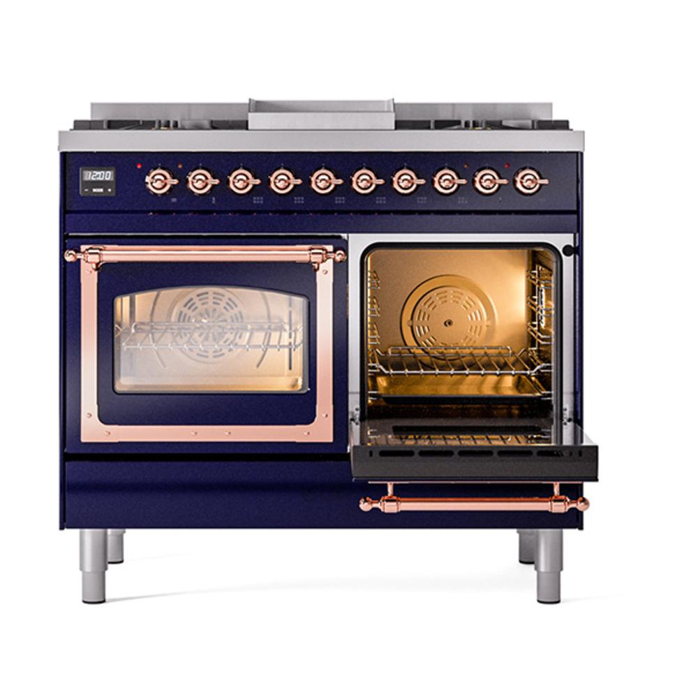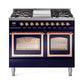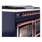 Ilve UND40FNMPMBP Ilve Und40Fnmpmbp Nostalgie Ii Noblesse 40" Dual Fuel Range (Natural Gas, Triple Glass Door, Midnight Blue, Copper)