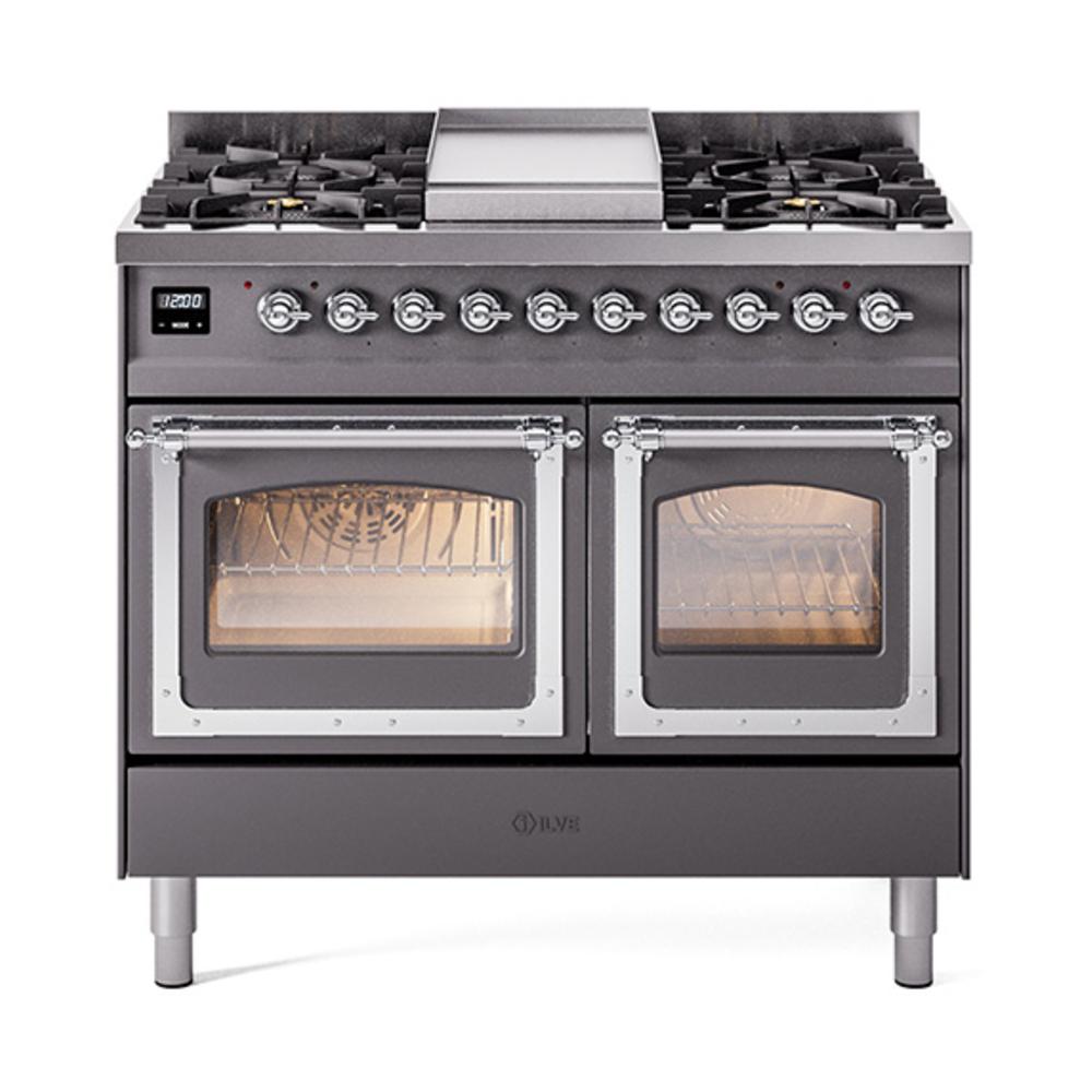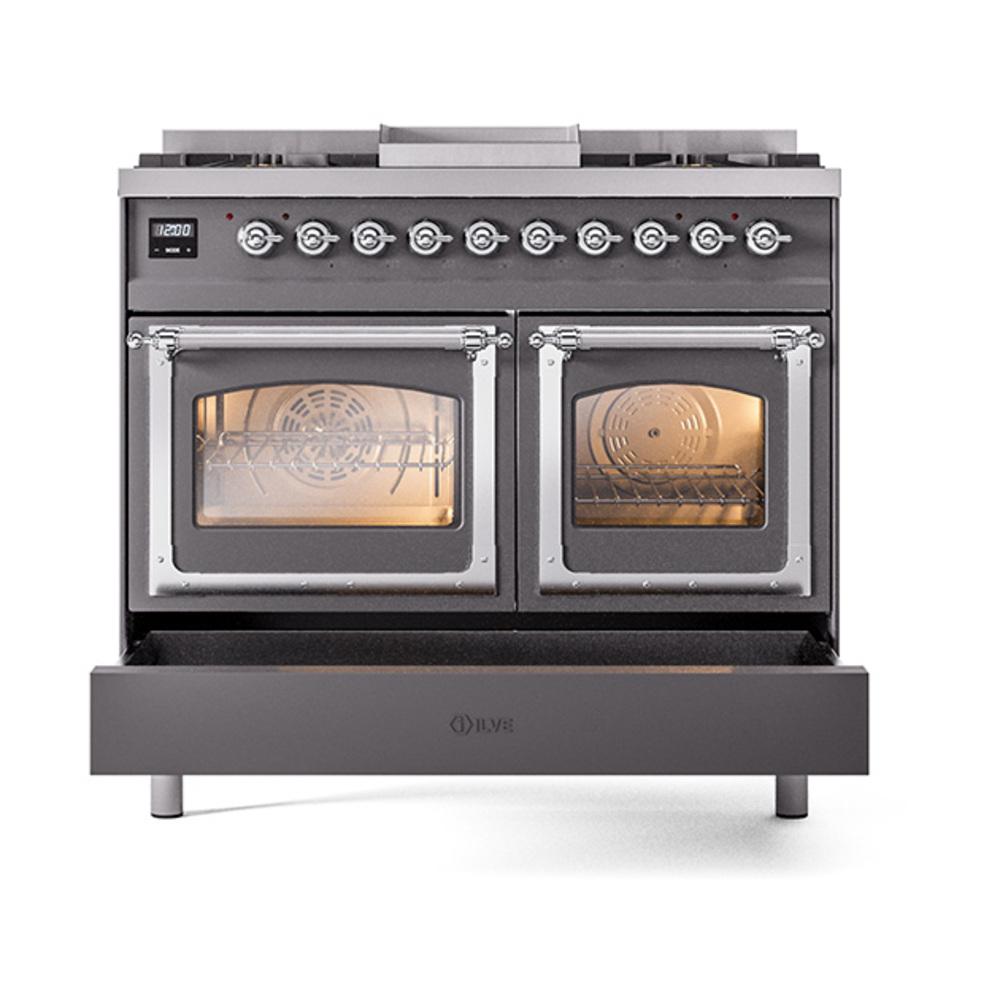 Ilve UND40FNMPMGCLP Ilve Und40Fnmpmgclp Nostalgie Ii Noblesse 40" Dual Fuel Range (Liquid Propane, Triple Glass Door, Graphite Matte, Chrome)