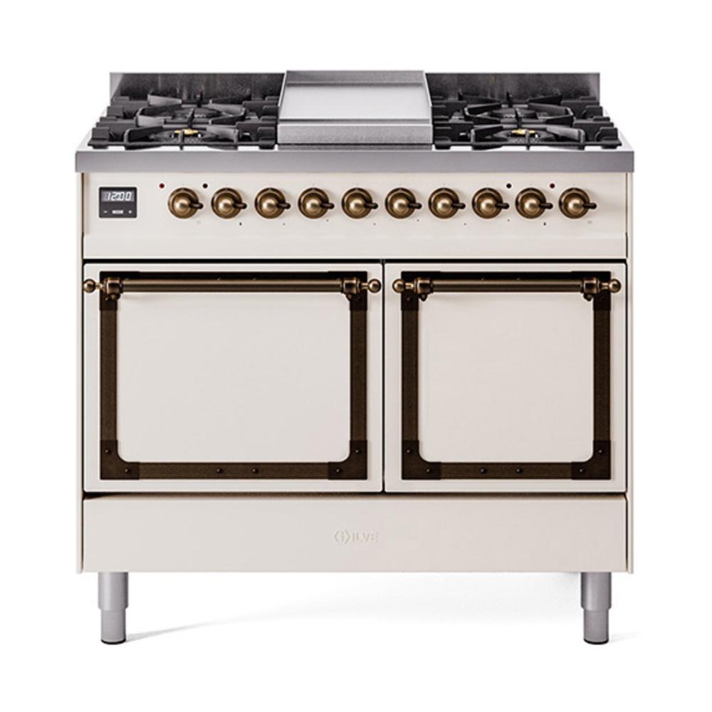 Ilve UND40FQNMPAWB Ilve Und40Fqnmpawb Nostalgie Ii Noblesse 40" Dual Fuel Range (Natural Gas, Solid Door, Antique White, Burnished)