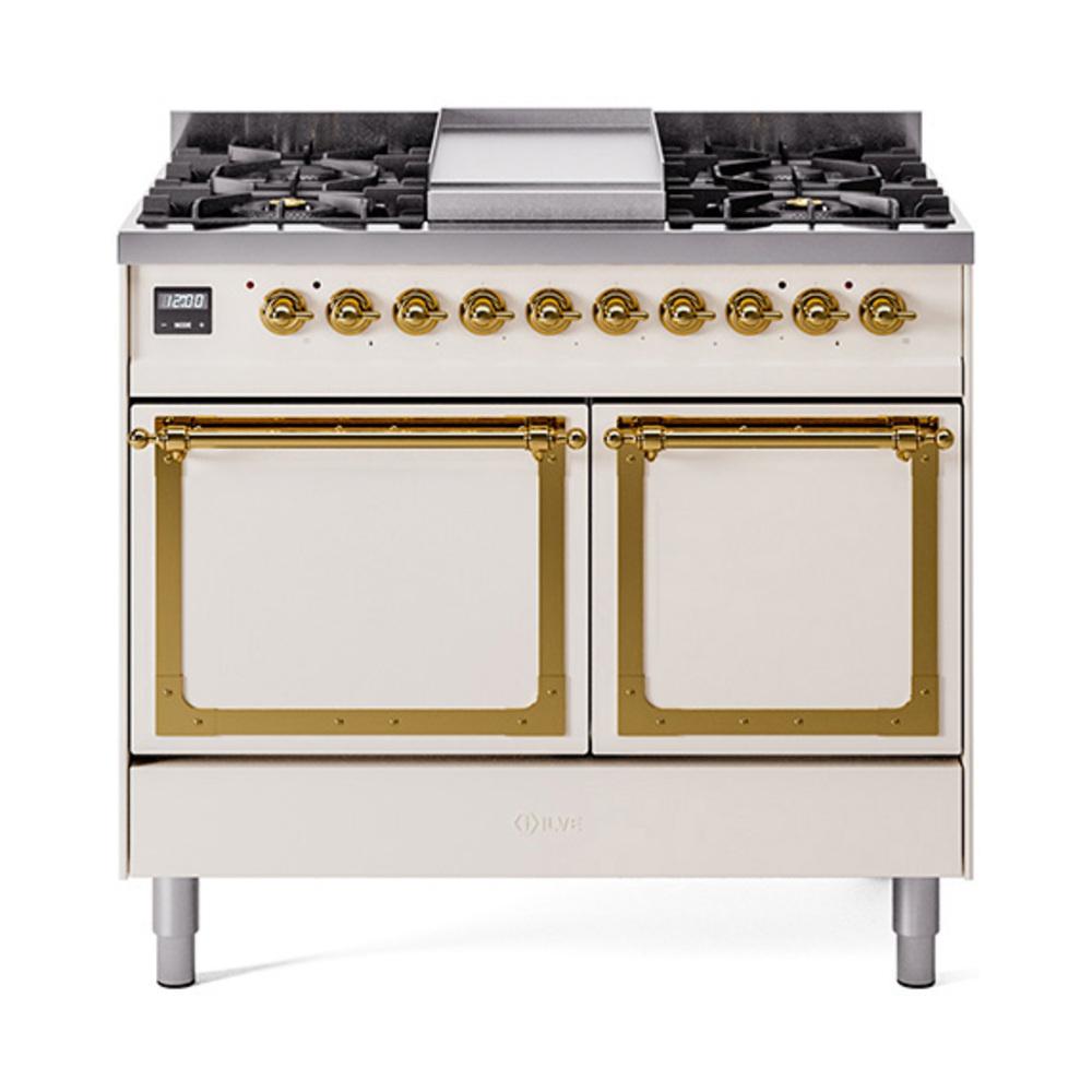 Ilve UND40FQNMPAWG Ilve Und40Fqnmpawg Nostalgie Ii Noblesse 40" Dual Fuel Range (Natural Gas, Solid Door, Antique White, Brass)
