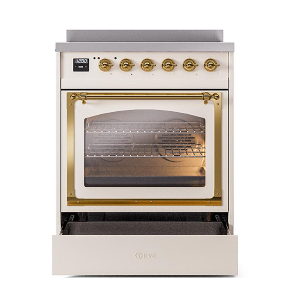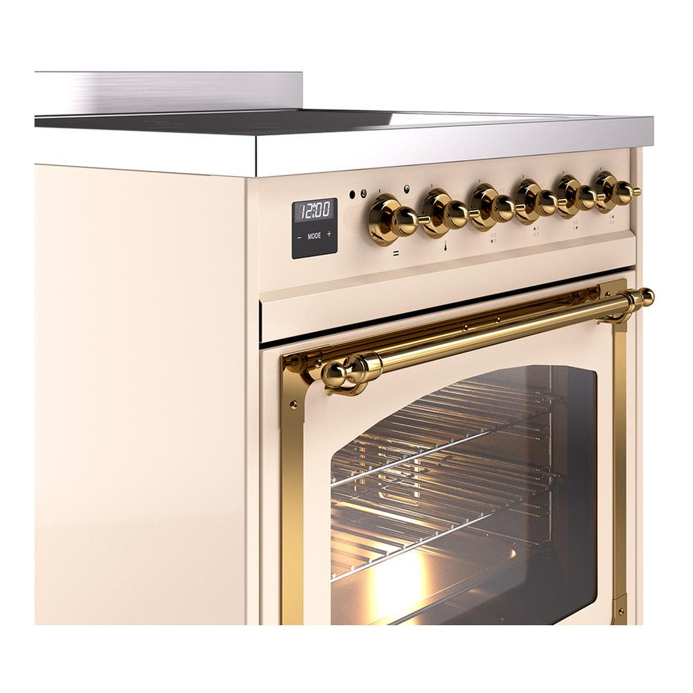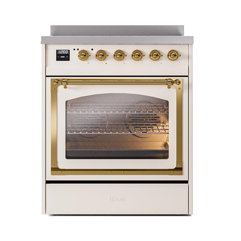 Ilve UNI304NMPAWG Ilve Uni304Nmpawg Nostalgie Ii Noblesse 30" Induction Range (Triple Glass Door, Antique White, Brass)
