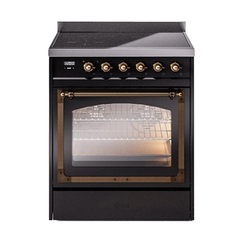 Ilve UNI304NMPBKB Ilve Uni304Nmpbkb Nostalgie Ii Noblesse 30" Induction Range (Triple Glass Door, Glossy Black, Burnished)