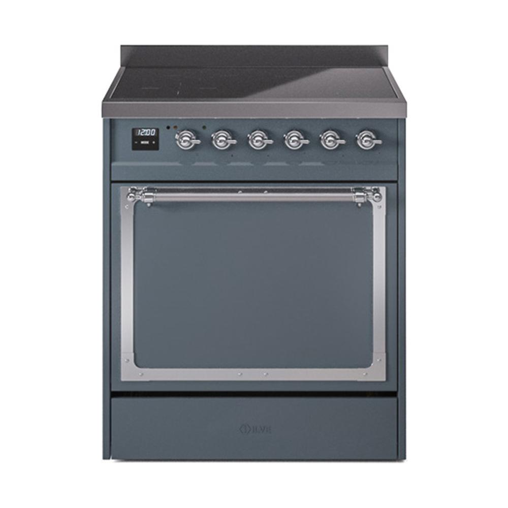 Ilve UNI304QNMPBGC Ilve Uni304Qnmpbgc Nostalgie Ii Noblesse 30" Induction Range (Solid Door, Blue Grey, Chrome)