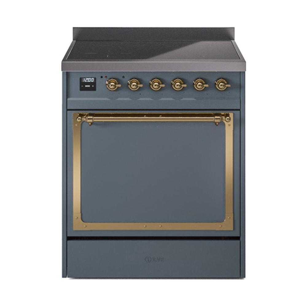 Ilve UNI304QNMPBGG Ilve Uni304Qnmpbgg Nostalgie Ii Noblesse 30" Induction Range (Solid Door, Blue Grey, Brass)