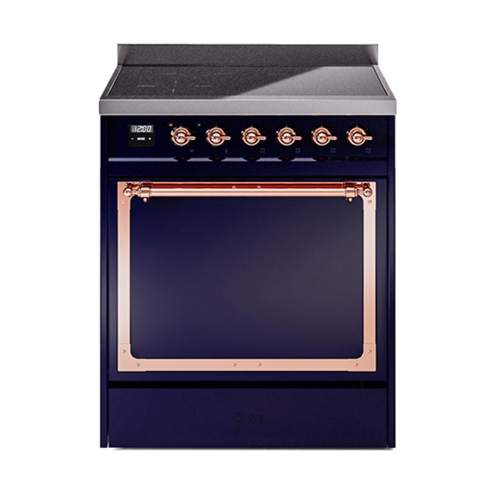 Ilve UNI304QNMPMBP Ilve Uni304Qnmpmbp Nostalgie Ii Noblesse 30" Induction Range (Solid Door, Midnight Blue, Copper)